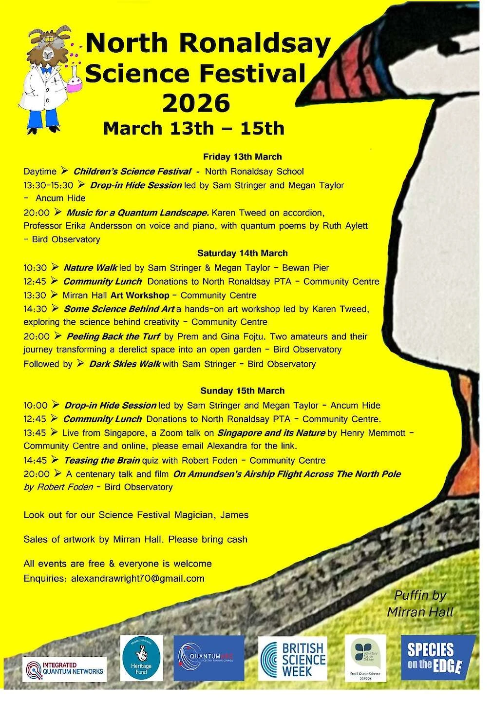 The North Ronaldsay Science Festival is completely free to attend. Find the festival on Facebook for information on events.