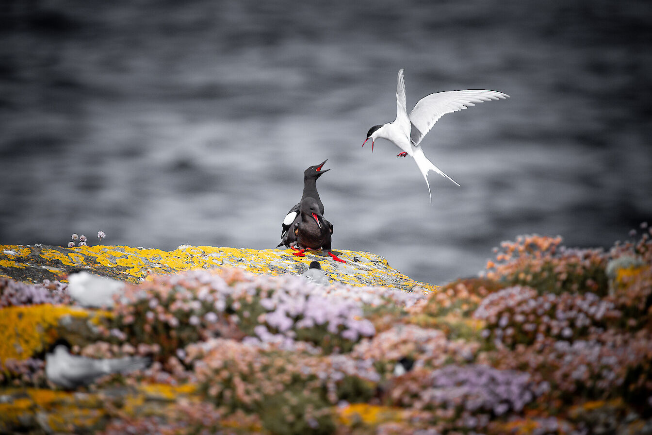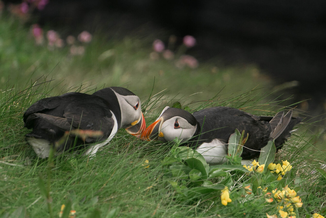 Orkney is home to a variety of different plants and animals, some of which are found in very few other places, and many of which are struggling in other parts of the World, but thriving in this habitat. The skies are frequented by curlew, lapwing and a range of other waders, as well as raptors such as hen harriers and short-eared owls. Each summer, Orkney’s cliffs are filled with the sounds and smells of gannets, razorbills, guillemots and puffins. The surrounding oceans are home to cetaceans such as Orca and Risso’s Dolphins, as well as seals, which pup here each year. On land, otters are present but elusive, and the area is home to the Orkney Vole – a subspecies found nowhere else on Earth. Botanical highlights include Oysterplant, Scottish Primrose and Sea Thrift.