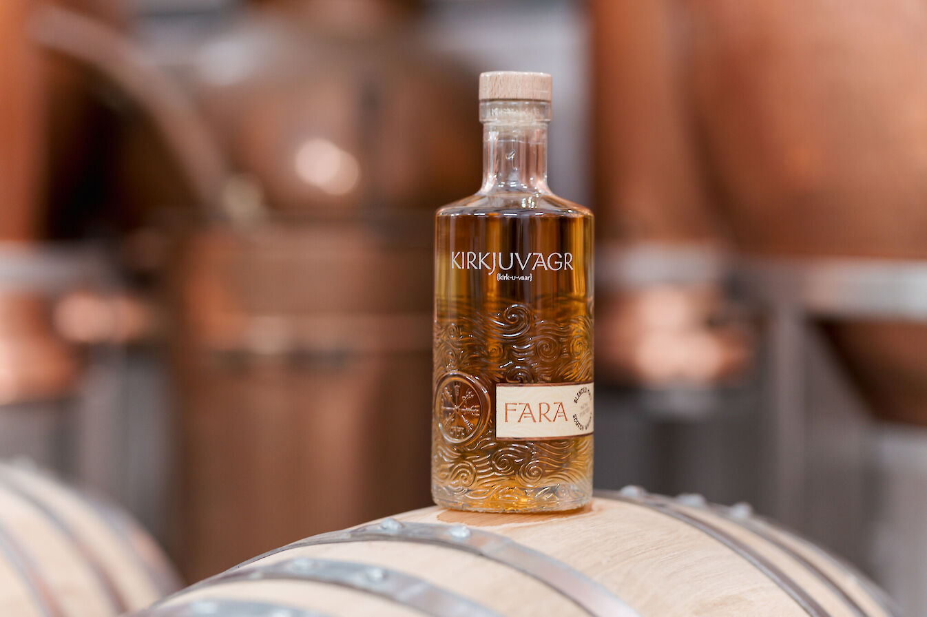 As an initial step into the whisky market, and before its own single malt becomes available after the minimum three-year maturation period, the distillery has launched its first blended malt whisky, Fara. This non-peated expression contains sweet notes of heather honey and vanilla, accompanied by subtle hints of spiced apple.