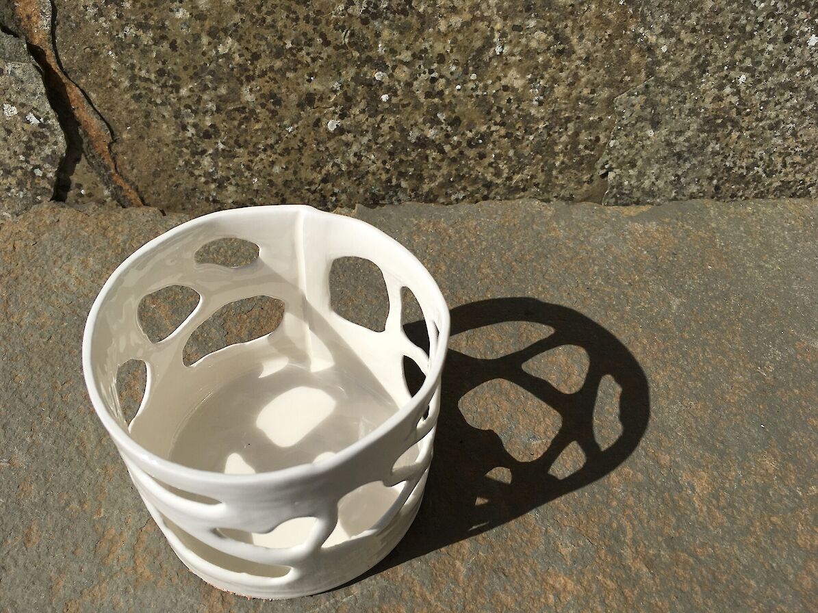 I taught part time ceramic classes in a studio run by Aberdeen City Council called Whitespace, but have never had a studio of my own. Then, in 2012, I moved to Inverness and took the opportunity to create my own studio where I worked and taught for five years. Since then I have moved to Orkney where I continue to create new pieces influenced by the beautiful surroundings of the land and sea. My work is inspired by the forms, shapes and colours found in the sea, sand and land of Orkney.