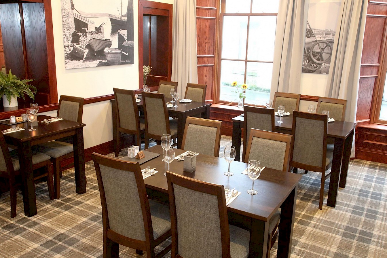 The comfortable Hudson Lounge offers a relaxing spot to end a day of adventuring across the islands, a warm and inviting place to while away the hours and have drinks with friends. The décor evokes Stromness’ links with the North West Territories where for many years Orkneymen swelled the ranks of gentlemen explorers, adventurers and traders of the Hudson’s Bay Company. The bar boasts a fine range of malts, gins, rums and local ales and there is tea and coffee on the go from open until close.