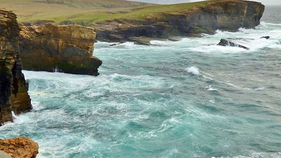 The Vat of Kirbister is perhaps the island’s most iconic natural attraction. It’s a dramatic sea cave and rock arch on the east side of the Stronsay and is part of a nature walk that takes in the beautiful coastal scenery.