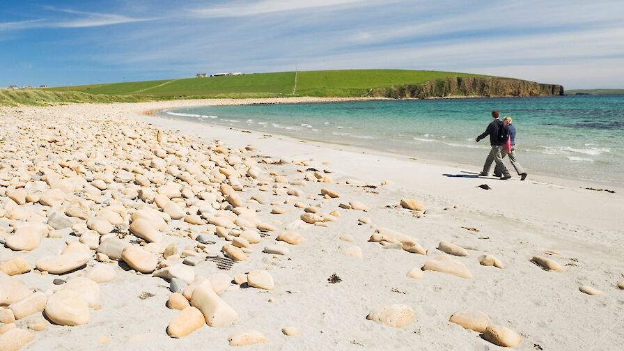 Just past the Sands of Wright, the headland of Hoxa juts out into Scapa Flow. It had an important role to play in two World Wars – its elevation and position proved to be the perfect spot for gun batteries and searchlights to scan the area for signs of enemy intrusion. There is a walk to the well preserved batteries, although now some of it has been closed off due to the deterioration of the old buildings. If you do visit the area, make sure to stop off at the Hoxa Head Tearoom for refreshments, before heading to the nearby Hoxa Tapestry Gallery to view some of the superb designs by local artist Leila Thomson.