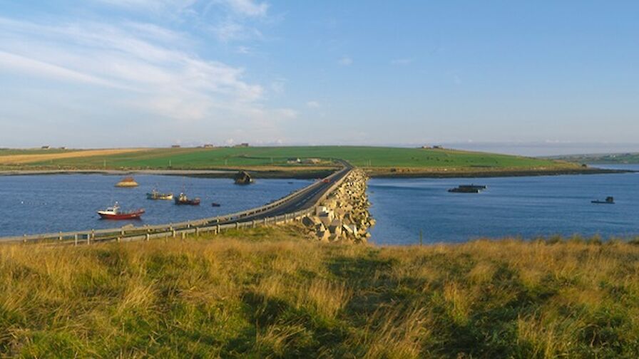It’s one of the great drives in Orkney. Heading south from Kirkwall through Holm, you come to the Churchill Barriers, great rock causeways linking four islands, built during the Second World War to help with the defence of Scapa Flow.
