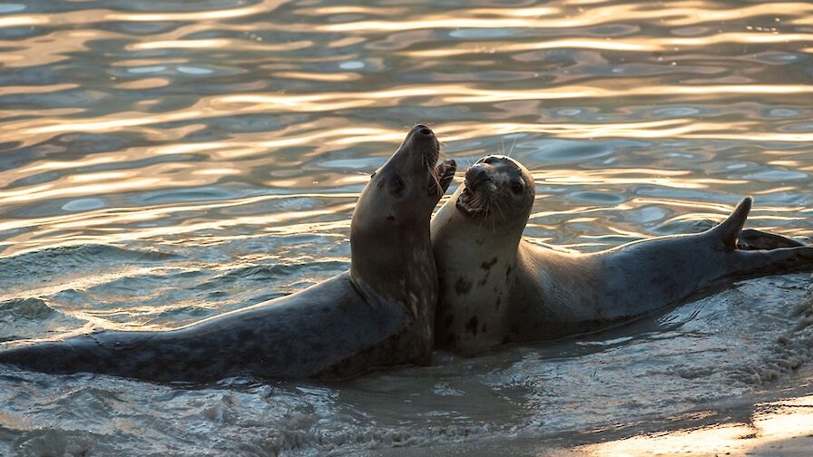 The Grey Seal or 'selkie' as we call it is deeply rooted in Orkney folklore with tales of transformation from seal kind to human form. It's possible to see these charismatic mammals almost anywhere in Orkney and a walk along any secluded beach is sure to be rewarded with a curious selkie following you along the tide line. However one of Orkney's most dramatic spectacles are the thousands of Grey Seals that come ashore to breed each October. With crashing waves, fighting males and cute white pups it's a fantastic sight. The really big numbers tend to be on uninhabited islands in the north isles but you can safely watch the drama without disturbing the seals from cliff tops on both the east and west coasts of South Ronaldsay.