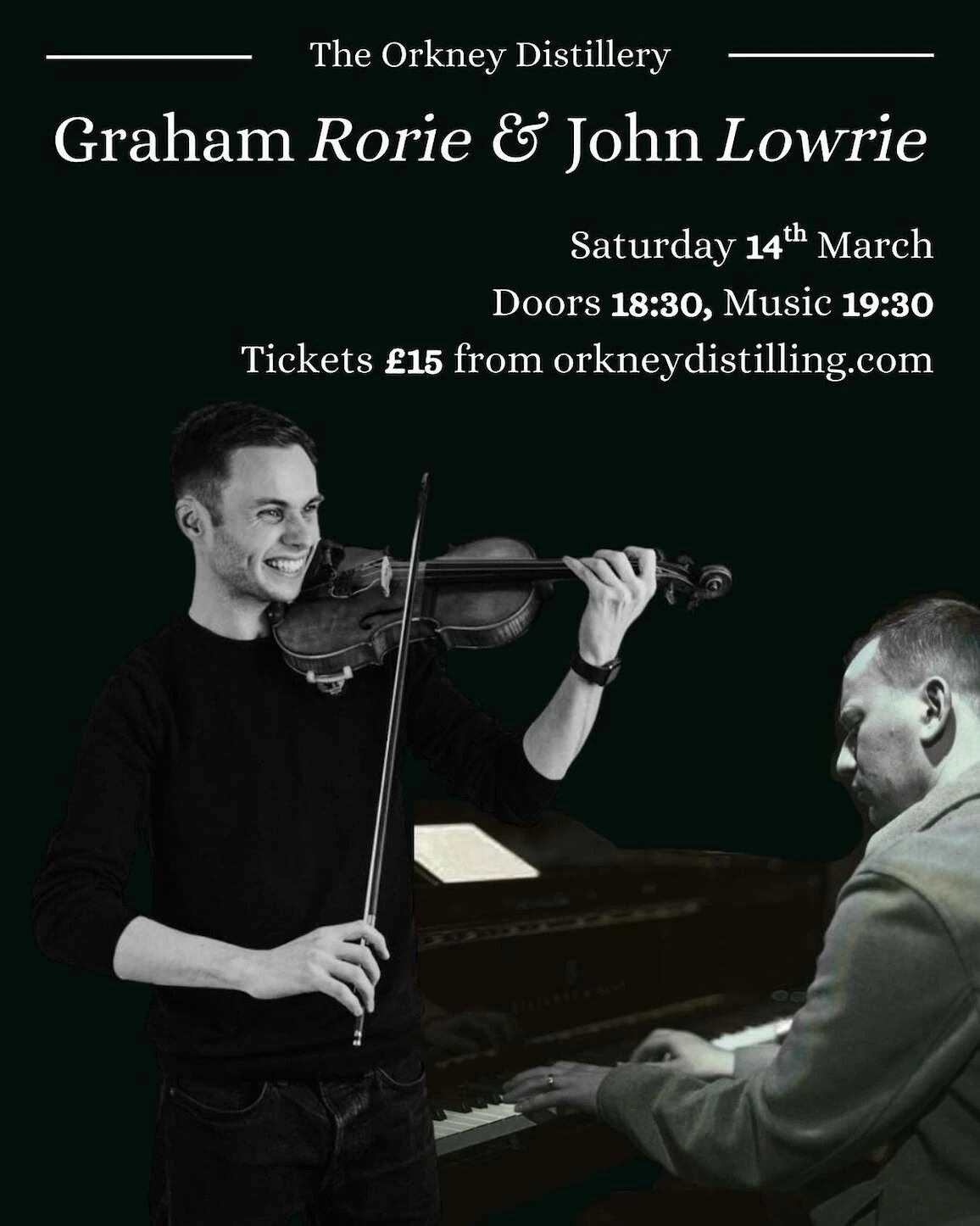 The concert will be held at the Orkney Distillery on 14 March. Doors open at 1830 for a 1930 start. Tickets cost £15 and can be bought via the Orkney Distillery website. Your order confirmation email serves as your ticket – please present it on arrival and sign in at the door on the night.