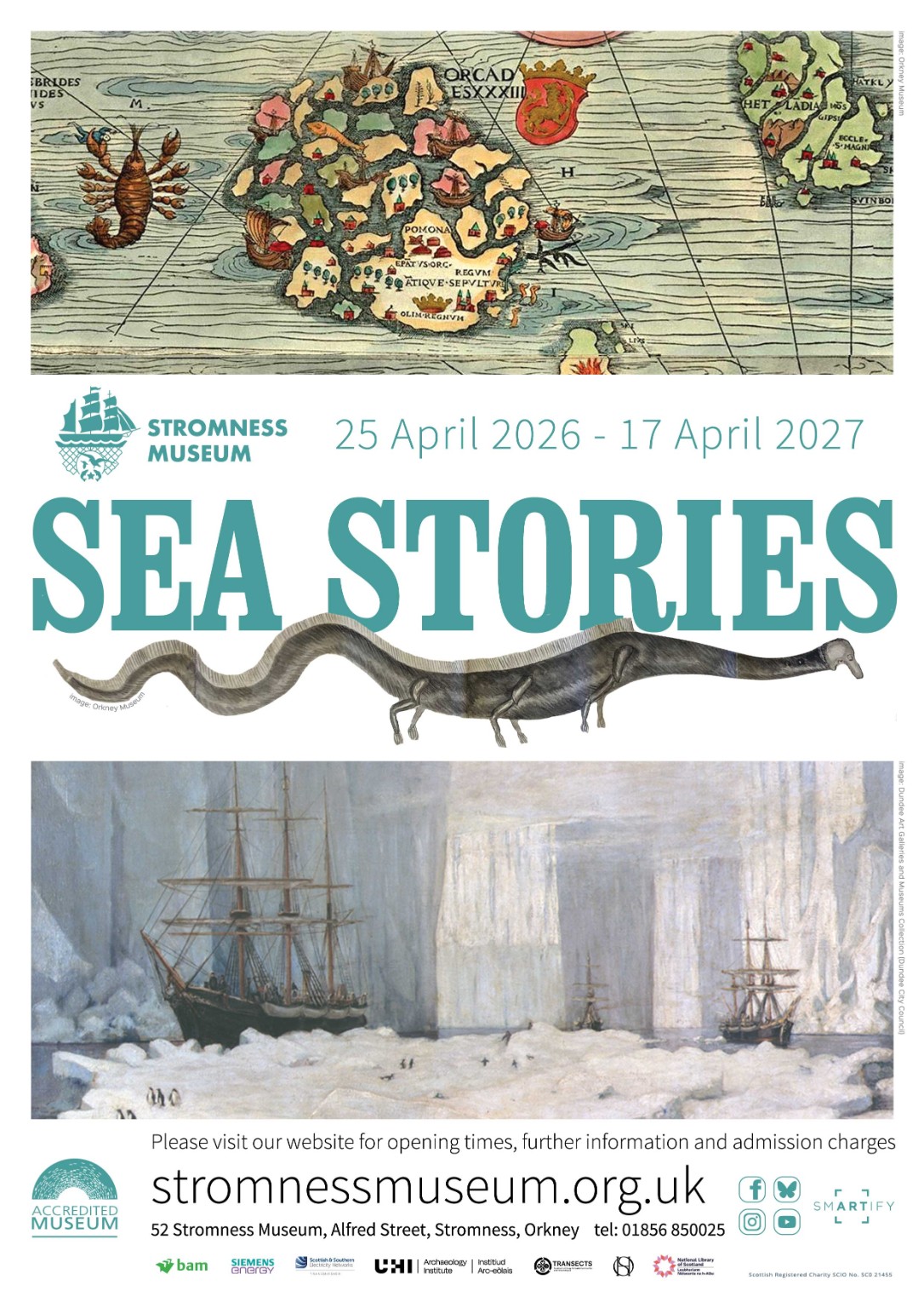 Sea Stories runs until April 2027. Stromness Museum is grateful to the following organisations for helping to make this exhibition possible: BAM construction, Siemens Energy, SSEN, UHI Archaeology Institute, TRANSECTS research project, Orkney Heritage Society, National Library of Scotland.