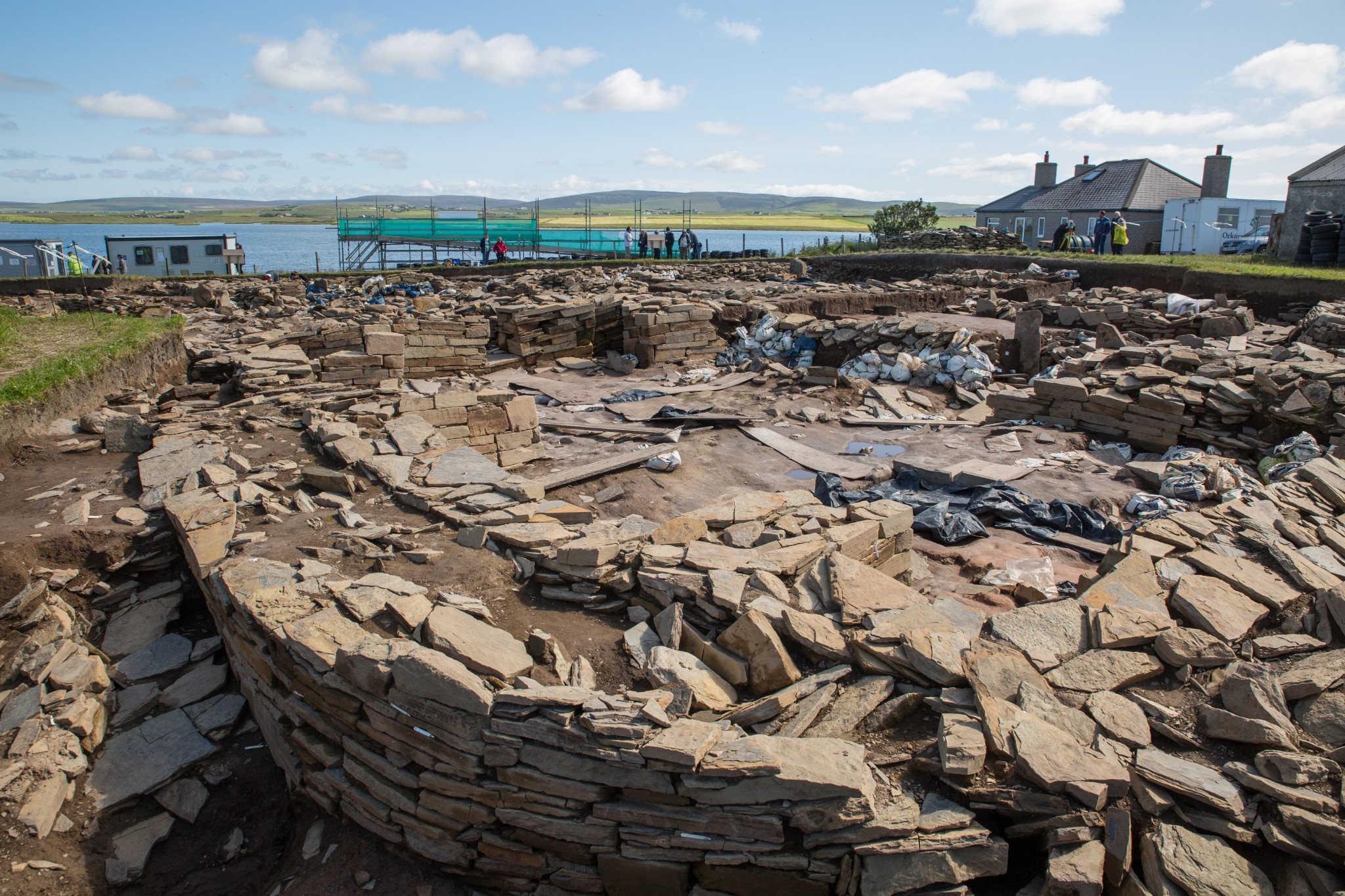 Subsequent archaeological excavations on the Ness revealed a large complex of monumental Neolithic buildings along with decorated masonry, pottery, stone tools, evidence of stone tiled roofing and much more.