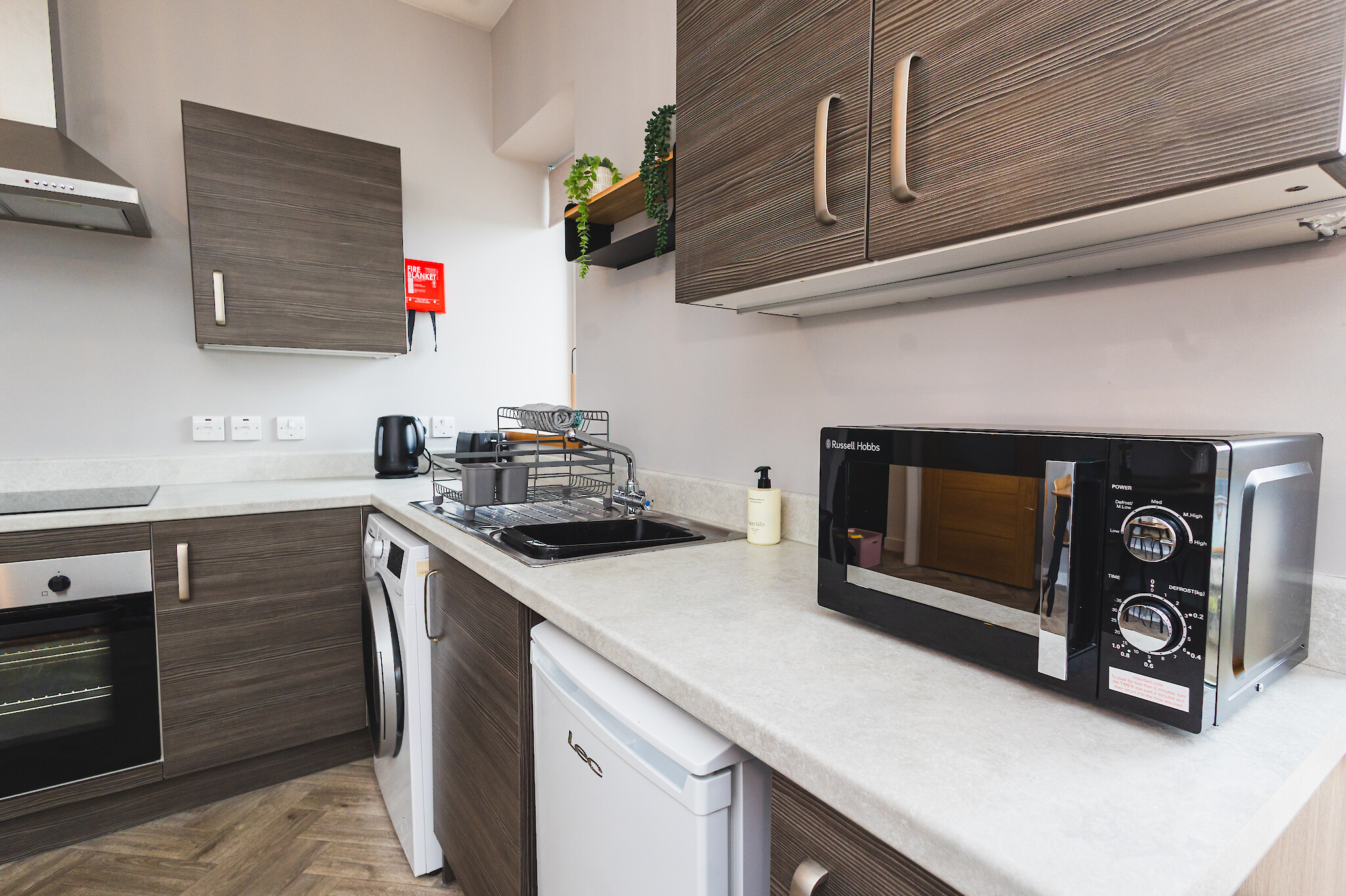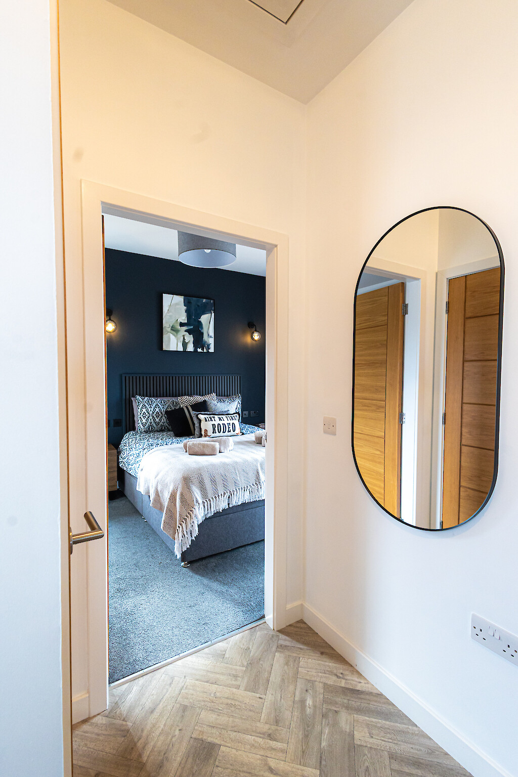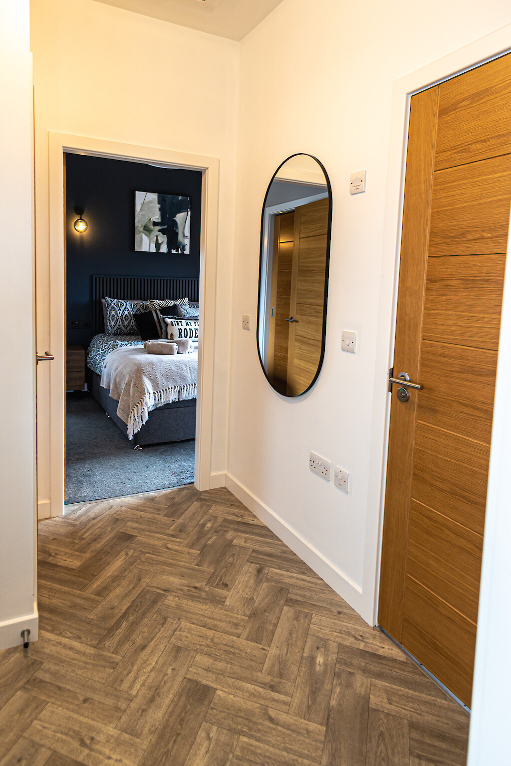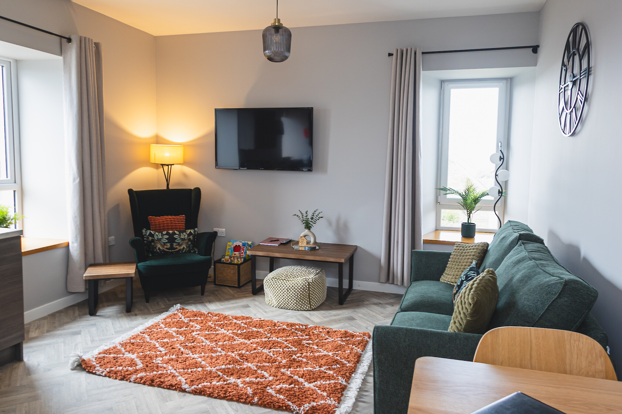 The flat features an open plan living area with comfortable seating, a dining space for 4 and a well equipped kitchen. The bedroom is calm and inviting with a comfortable bed and ample storage. A sleek, contemporary bathroom completes the space.