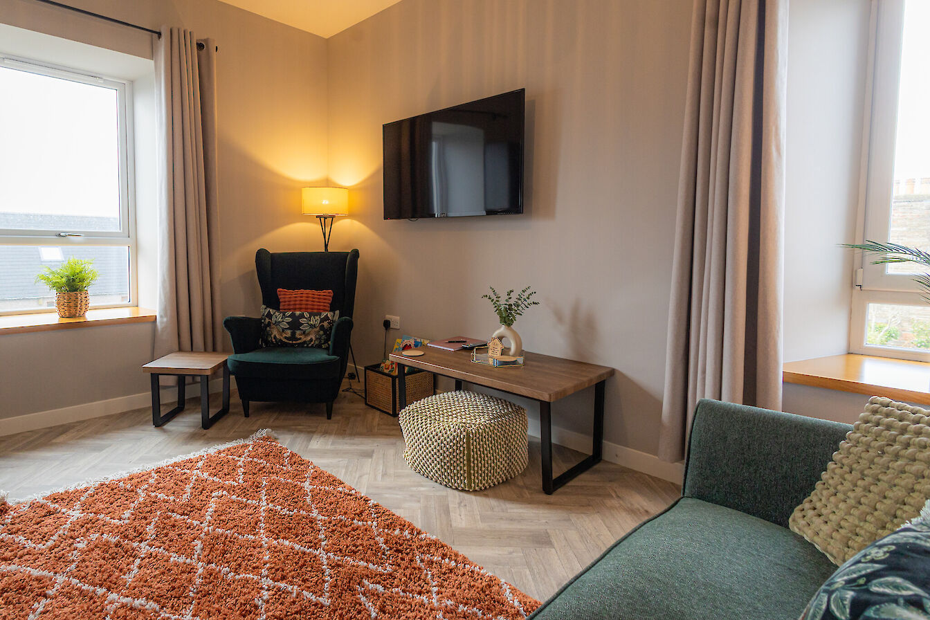 Enjoy a relaxing stay in the bright and stylish upper -floor one bedroom flat, freshly renovated and perfectly located just 5 minutes from the centre of Kirkwall and minutes from the fresh open space of Bignold Park.