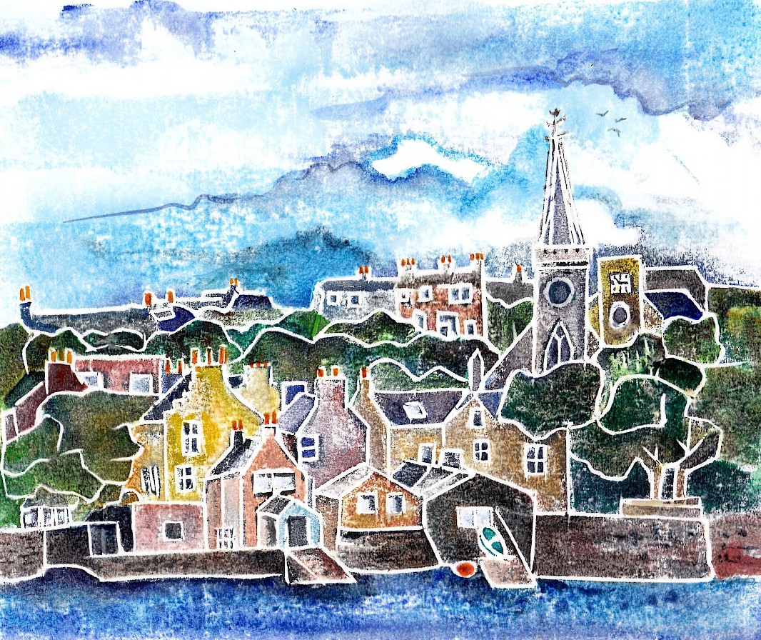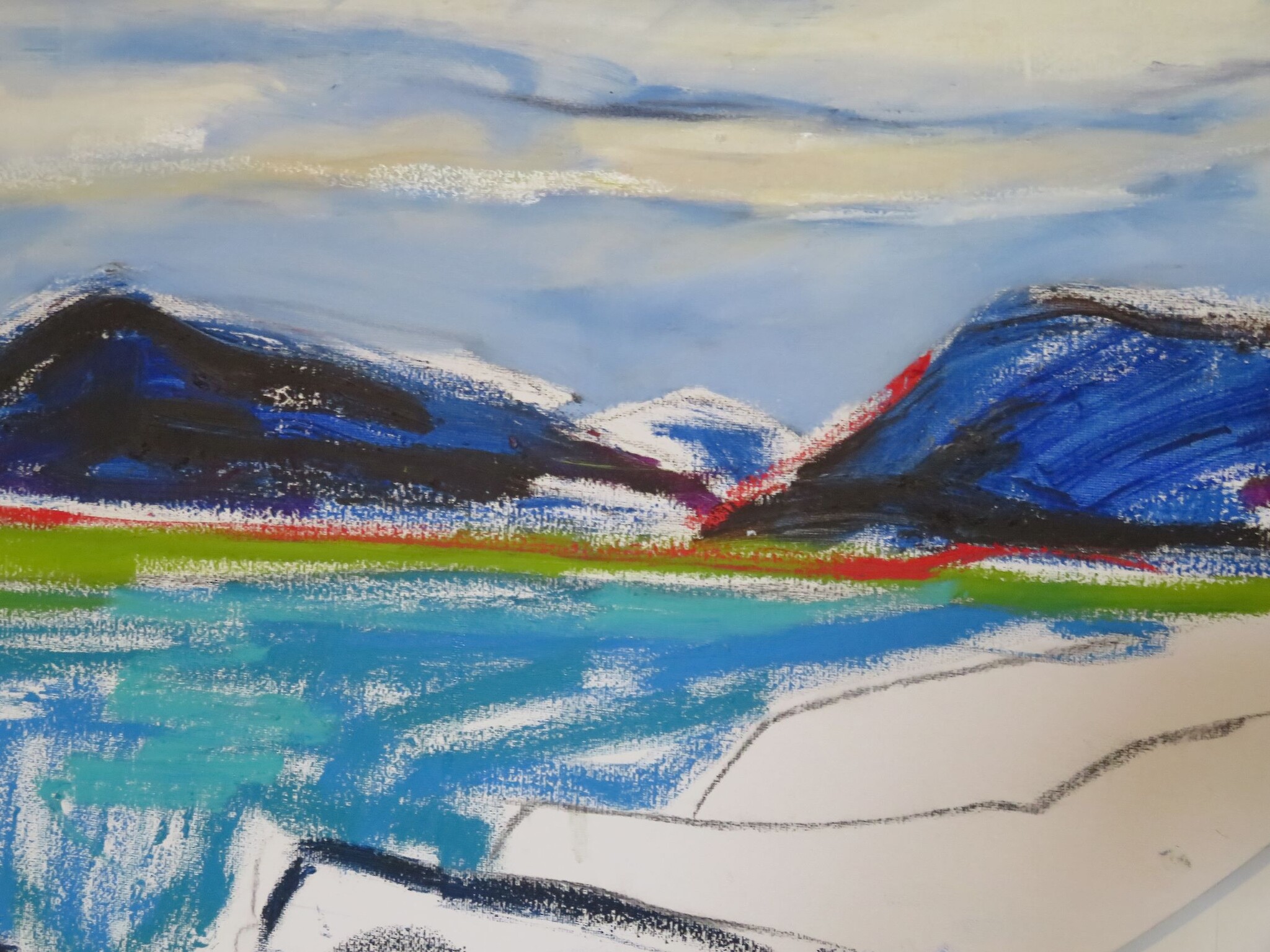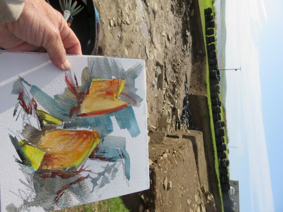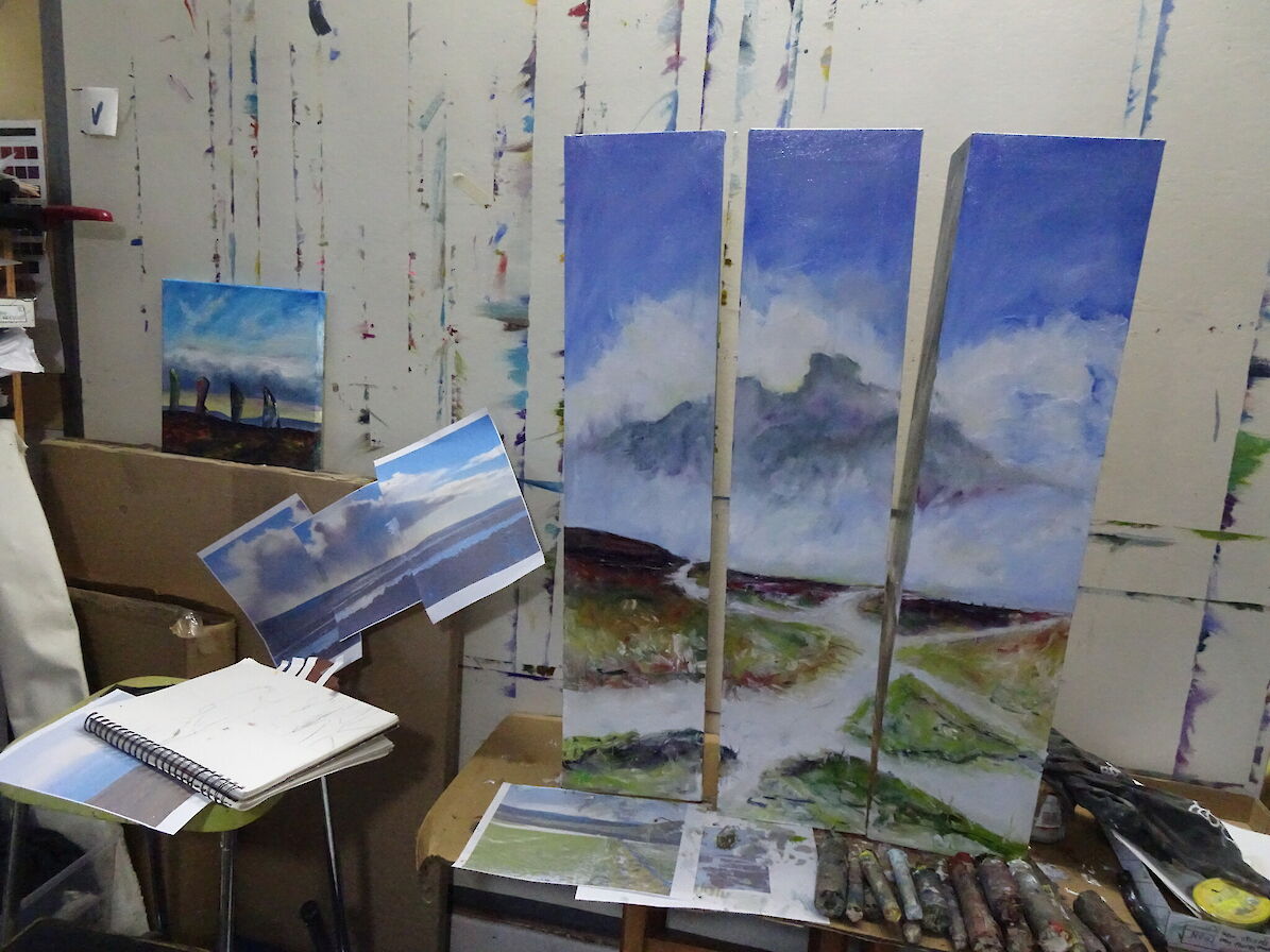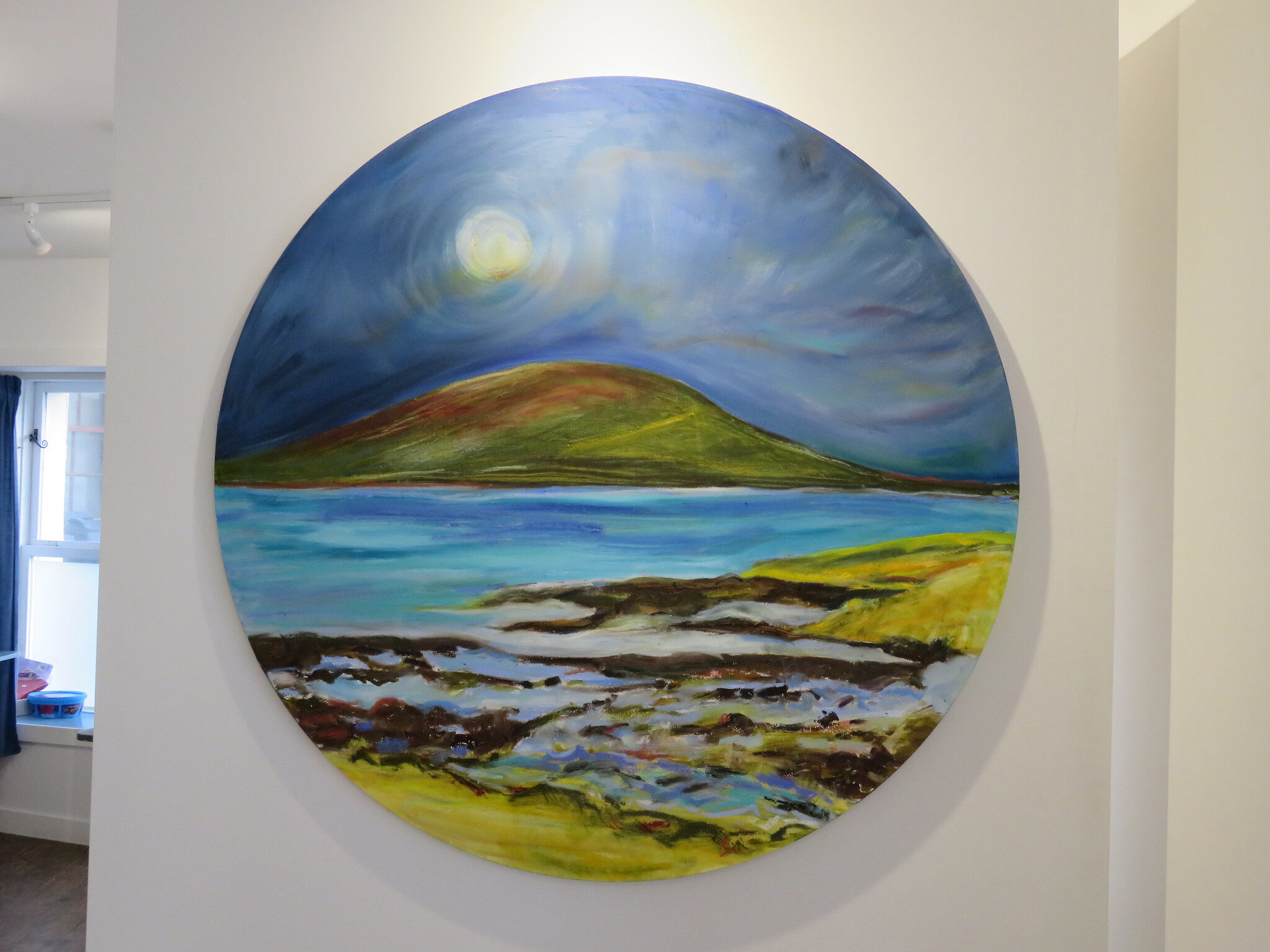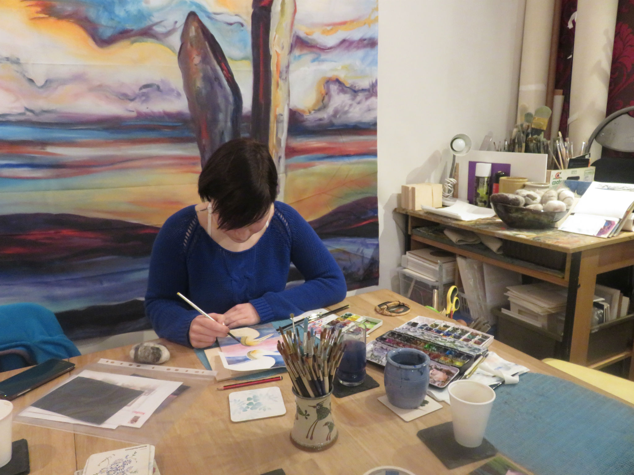 I paint nearby and in my studio and gallery at AT 59 Victoria Street, Stromness. It is a shared space with Lollie and Laine, a new and delightful gift shop, also featuring local handmade pieces. I try to paint outside, in the plein aire style, as often as the weather permits. It is a challenge!