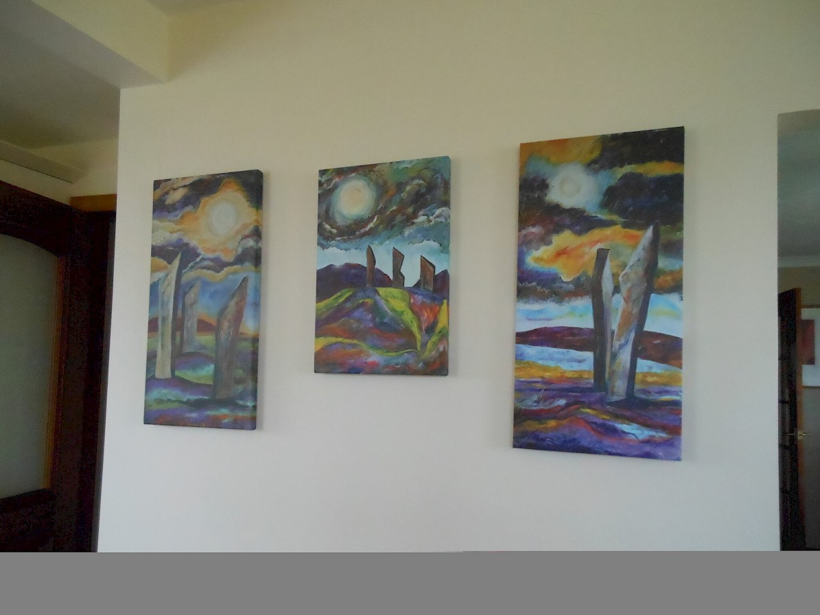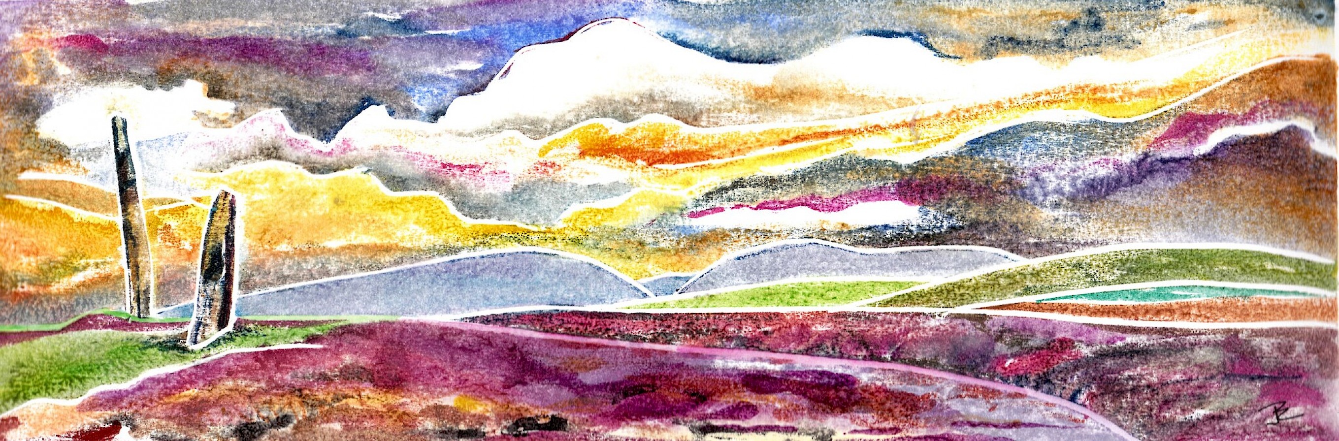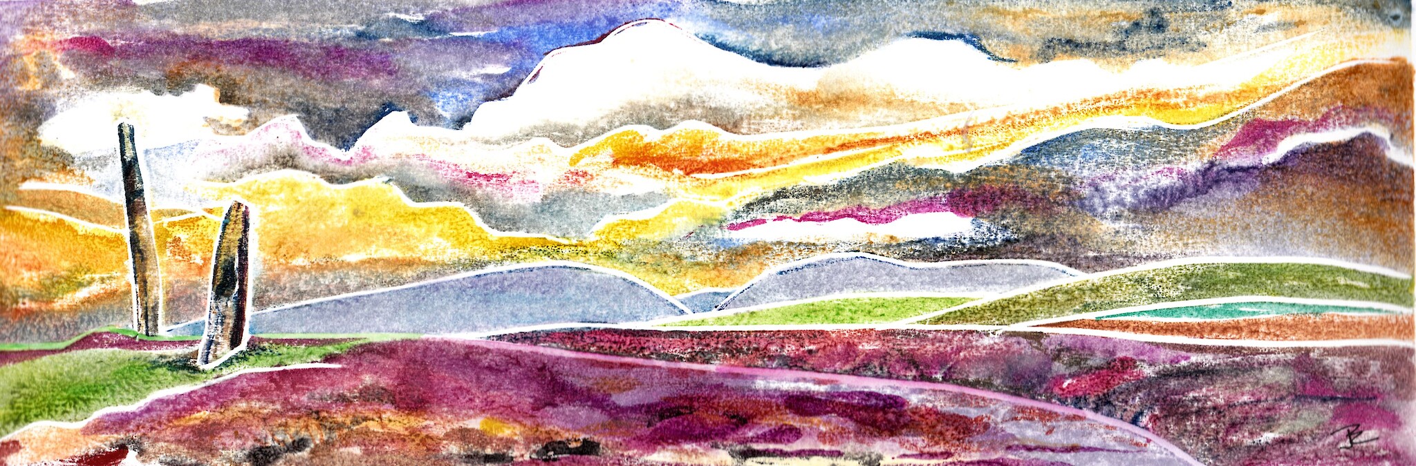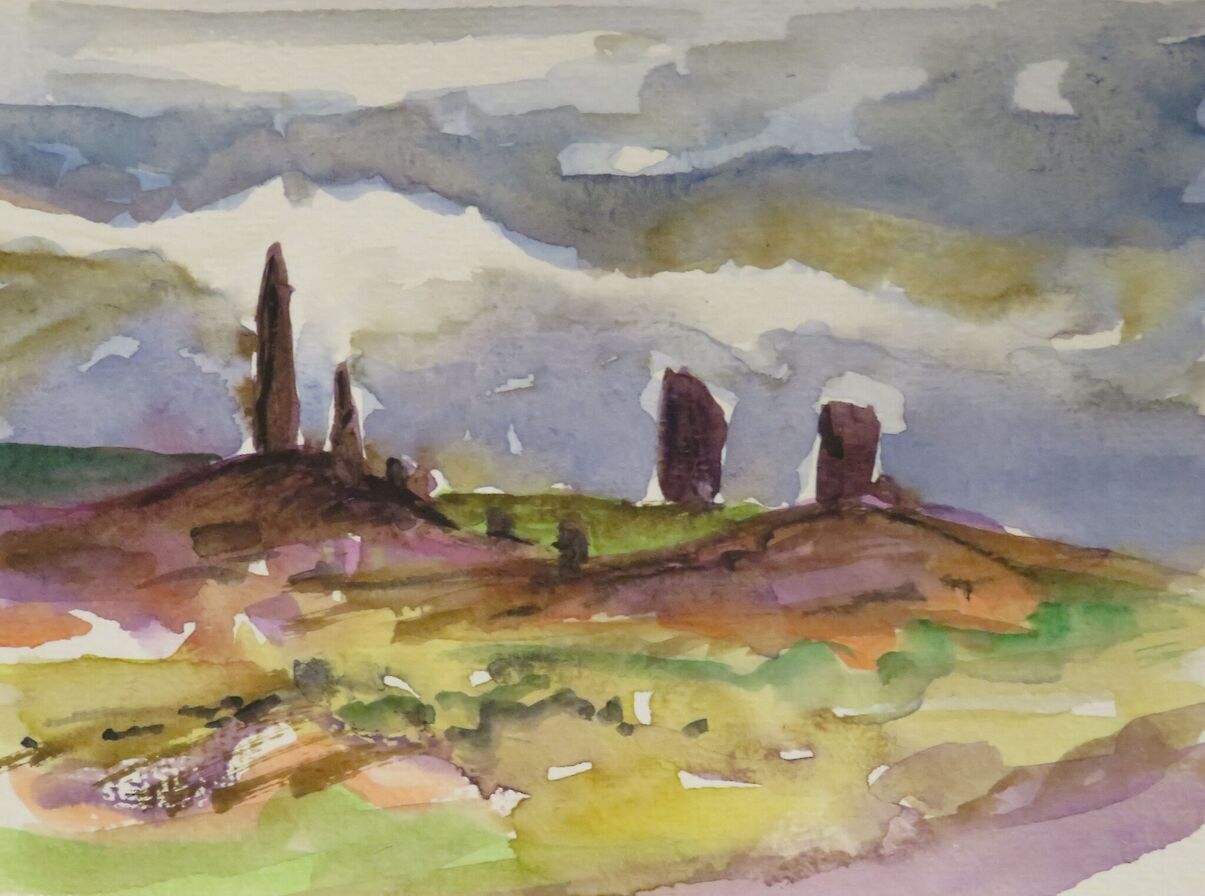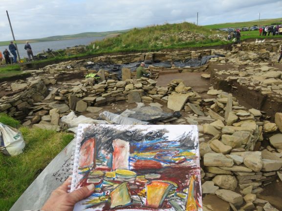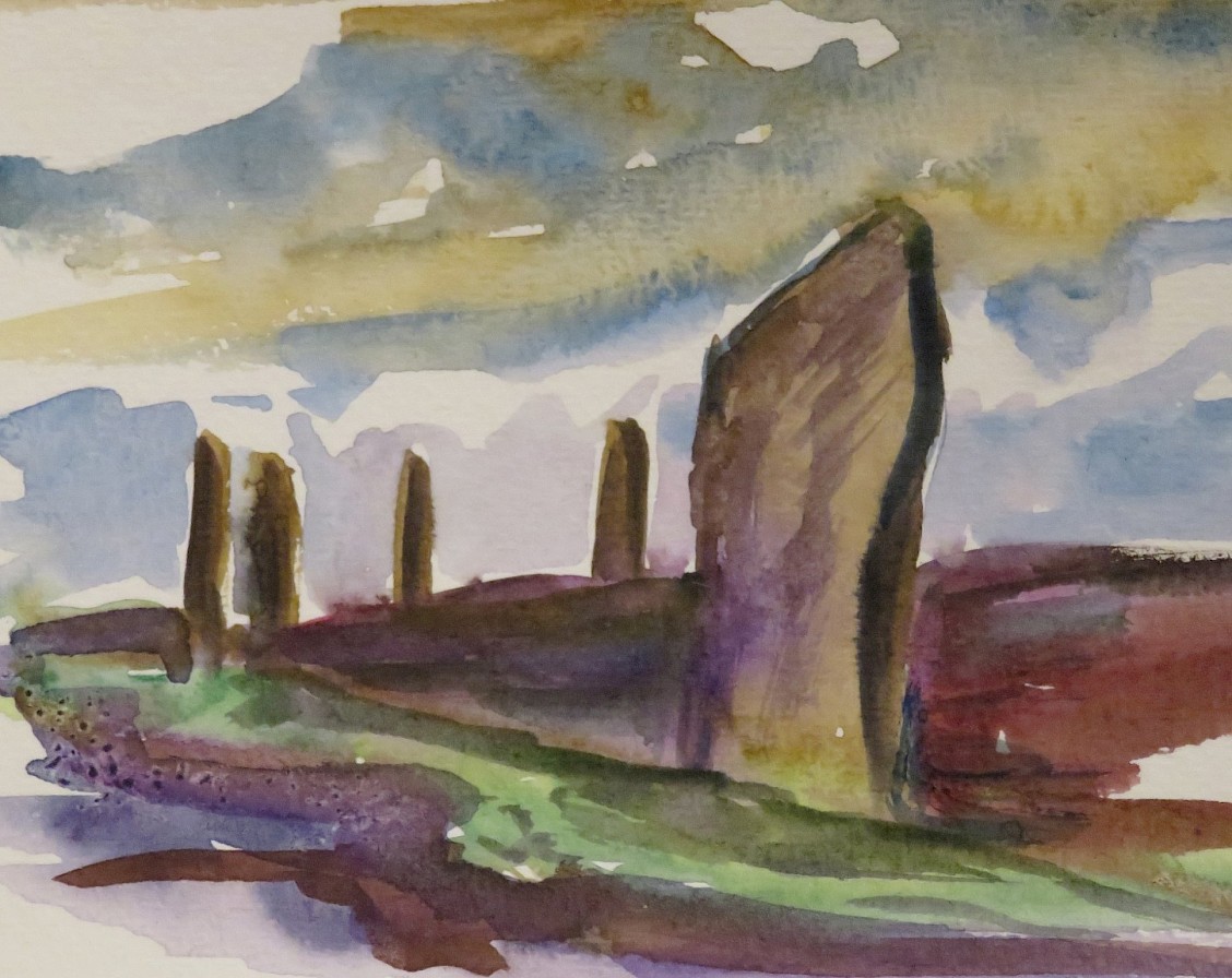 Original artwork inspired by the landscape and cloudscape and the Neolithic archaeology of Orkney. Using oil, watercolour, painting and printmaking, Jeanne's art creates a colourful expression. As an artist in residence at the Ness of Brodgar, she has produced numerous expressions of the famous archaeology. The site is now closed, but some originals are still available! Come and see them!