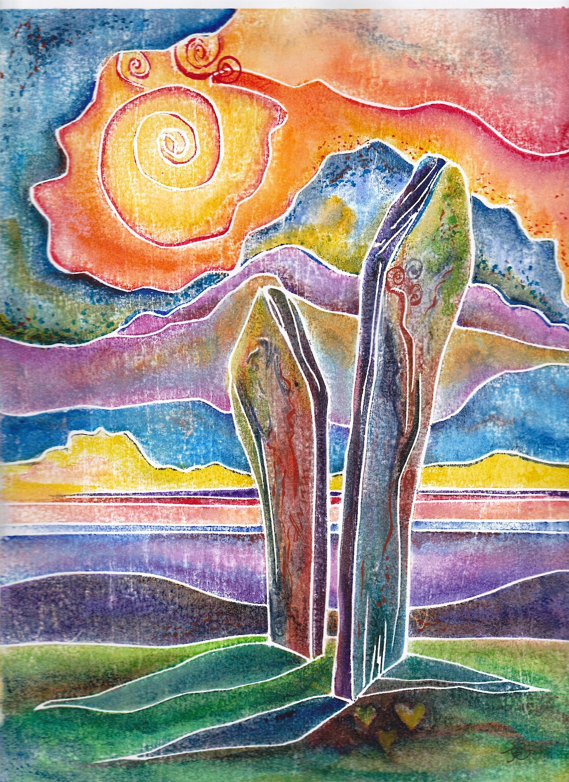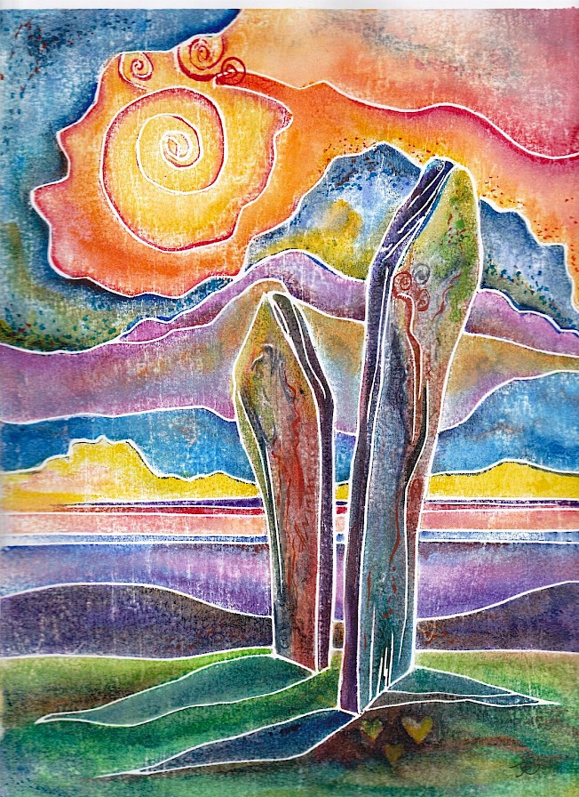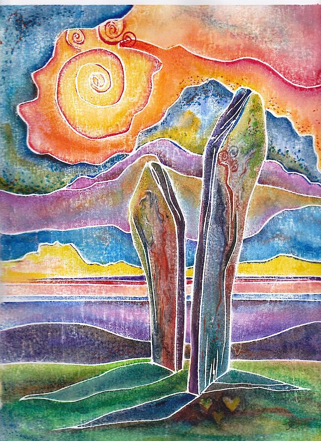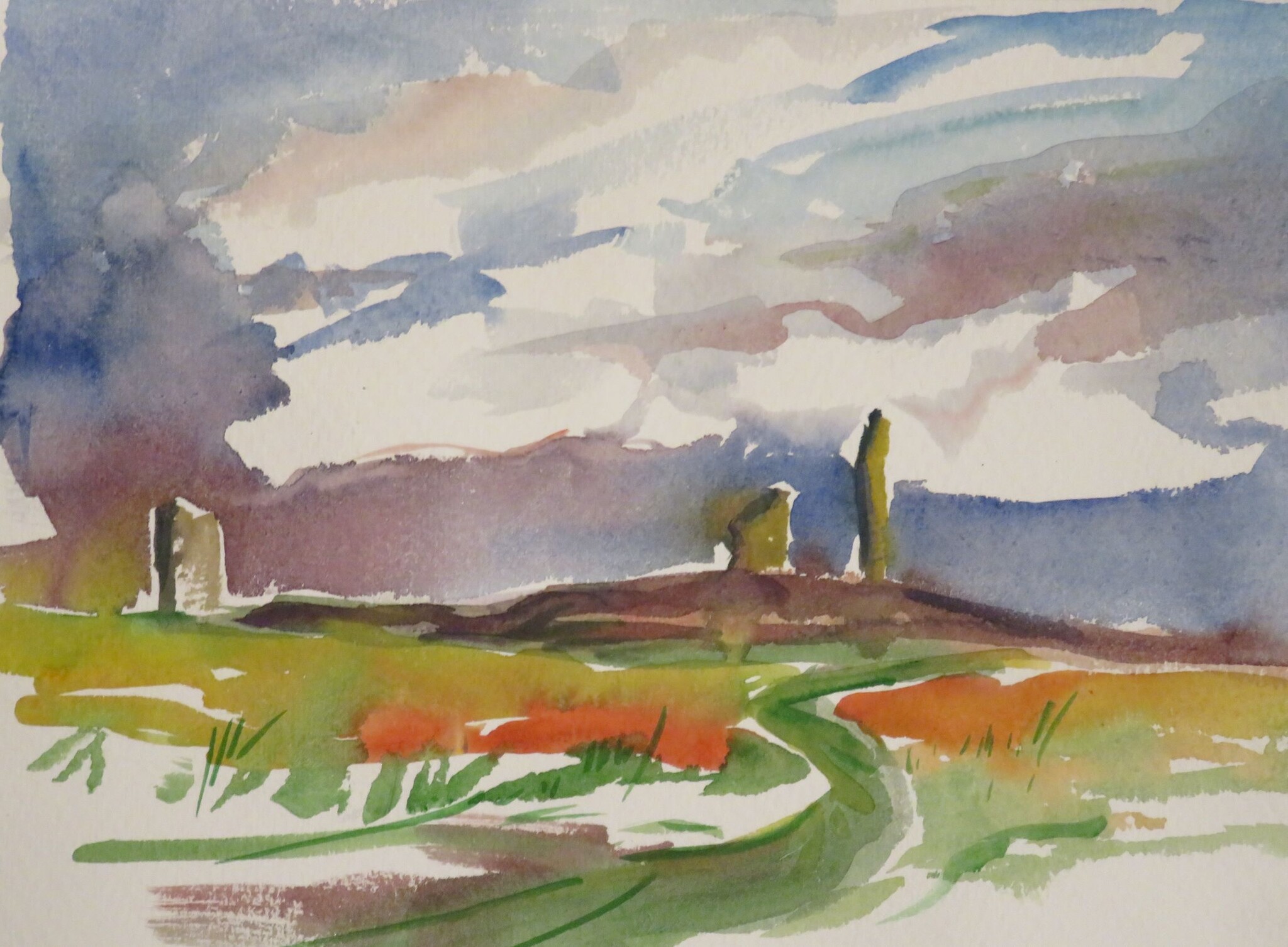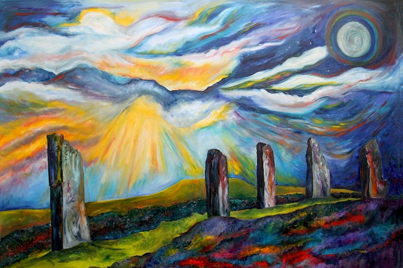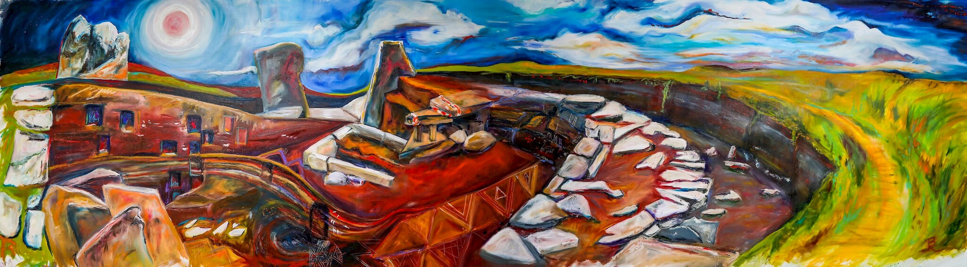 Original artwork inspired by the landscape and cloudscape and the Neolithic archaeology of Orkney. Using oil, watercolour, painting and printmaking, Jeanne's art creates a colourful expression. As an artist in residence at the Ness of Brodgar, she has produced numerous expressions of the famous archaeology. The site is now closed, but some originals are still available! Come and see them!