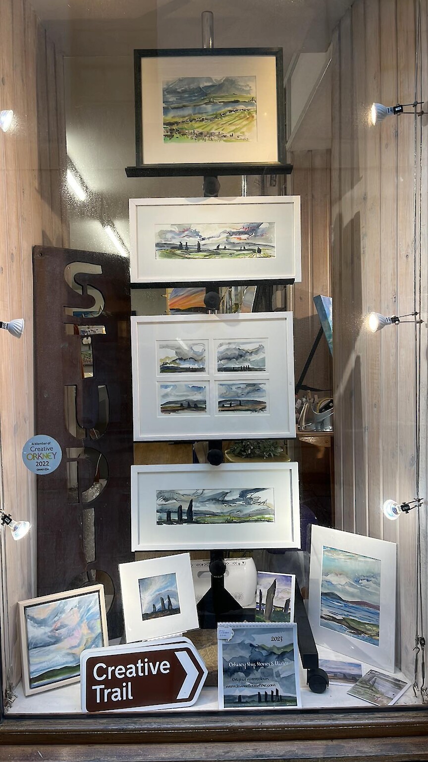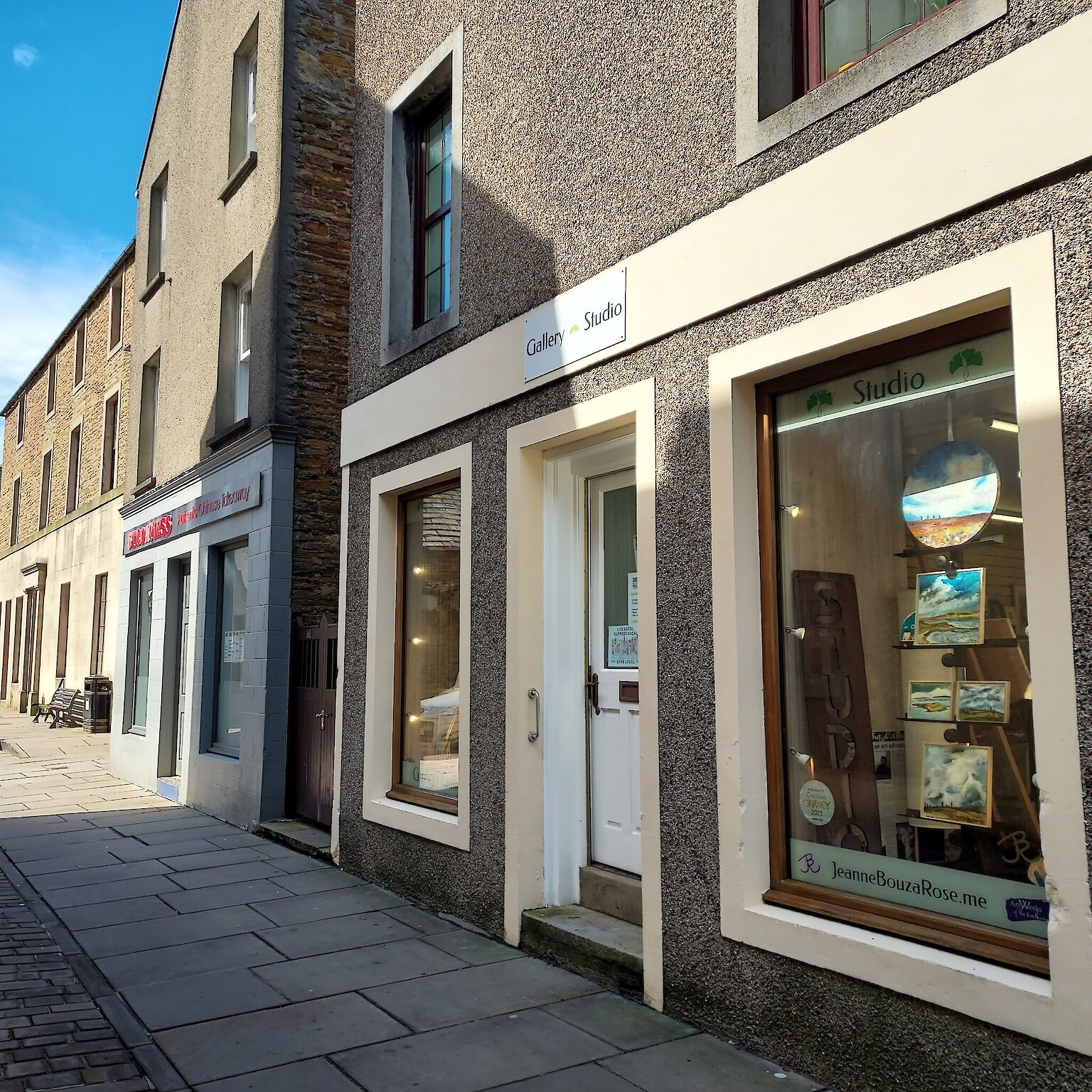 Jeanne is an artist working in oil and watercolour, inspired by Orkney's landscapes and standing stones. She was an artist in residence at the Ness of Brodgar archaeology site. This is both her watercolour studio and a gallery of her artwork, https://jeannebouzarose.com. She also has a selection of homeware items available in Stromess at J B Rosey, a few steps along the street.
