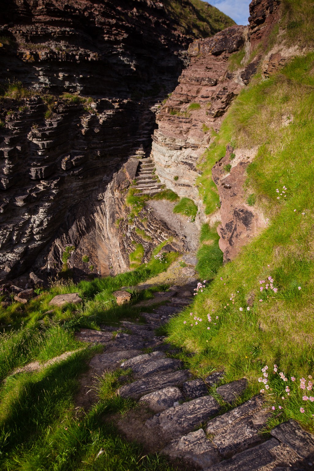 You'll eventually come to the Brough itself, a rocky outcrop almost completely detached from the mainland. The geology here is fascinating and hard to get your head around, but it makes sense once you clamber down the steps to the base of the Brough. You'll see a beautiful rocky bay on one side and a lovely, calming geo on the other.