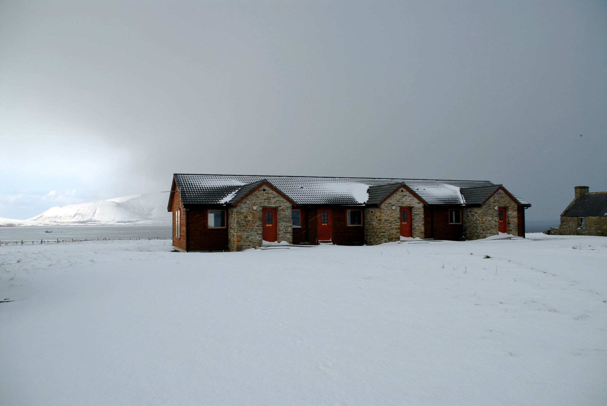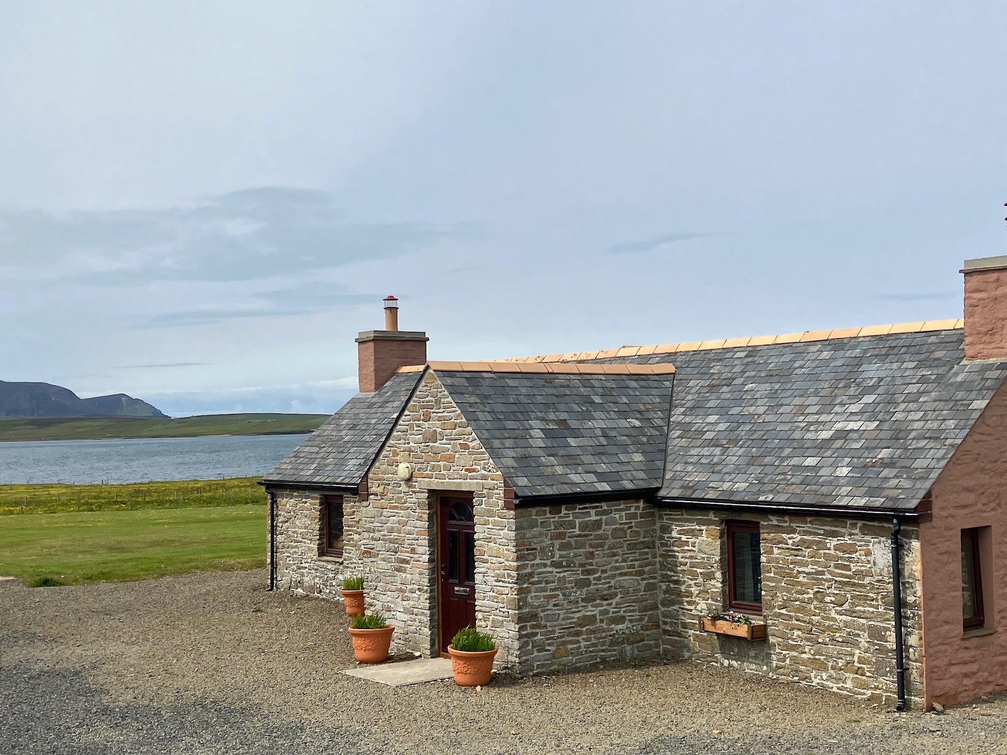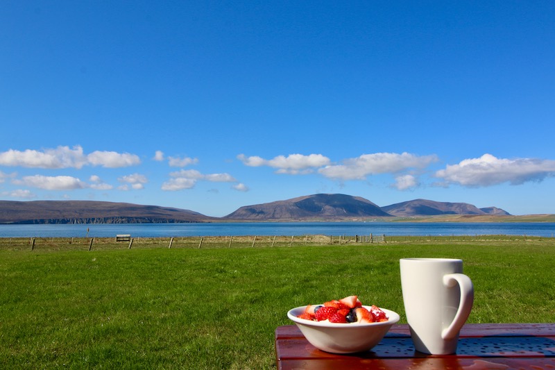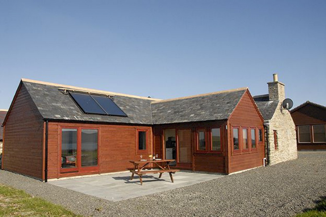 Buxa Farm Chalets are three Norwegian style semi-detached chalets situated on the A964 between Houton and Stromness in Orphir. The wood chalets with stone entrance porches are located on the waterfront of Scapa Flow on 20 acres of unspoilt land with stunning panoramic views of the hills of Hoy, Lighthouse on Graemsay and Stromness. The land is developed in accordance to Rural Stewardship guidelines to encourage plant and wildlife around the ponds and remaining property. Access to the shore is a short walk through the property.