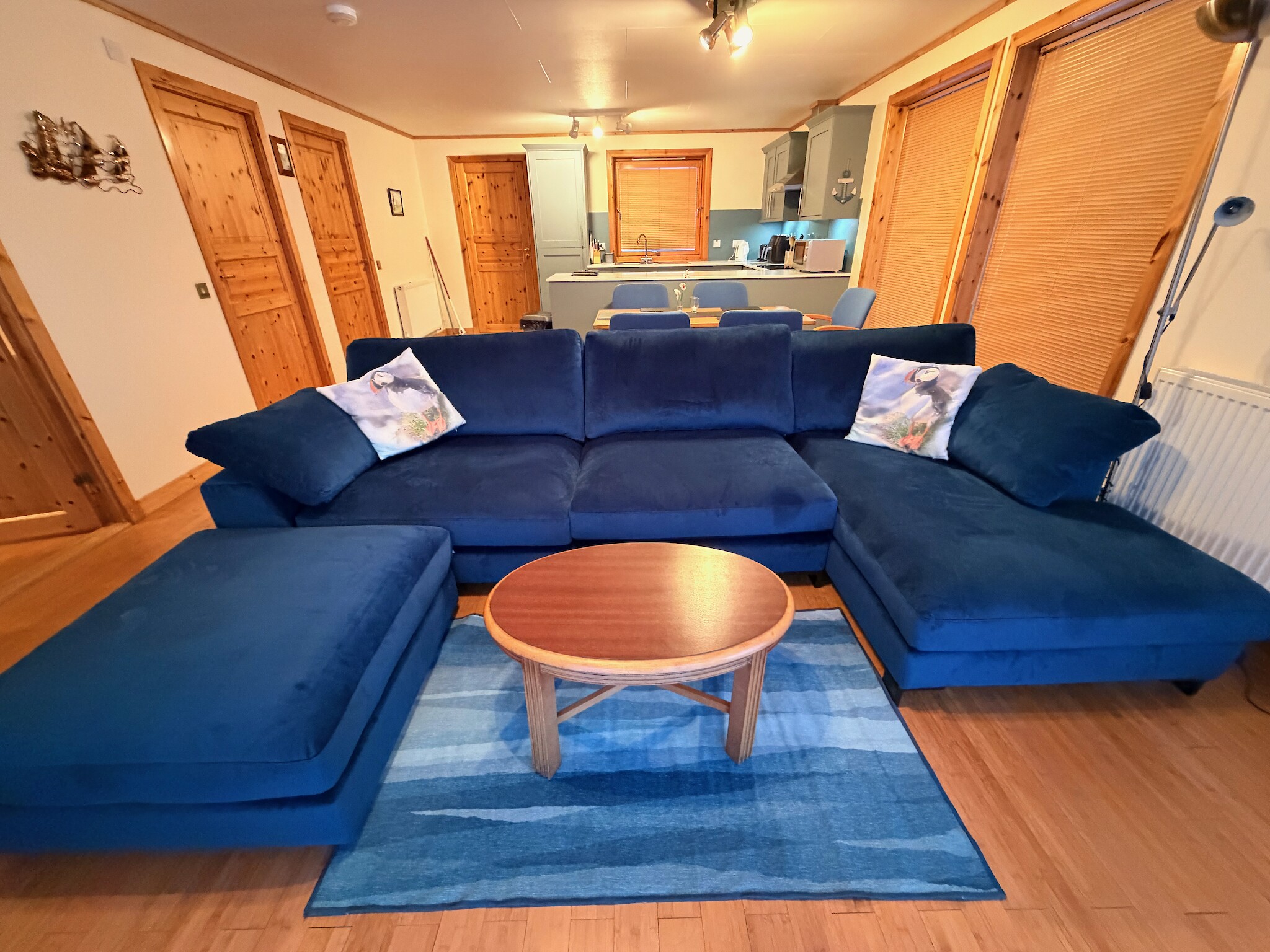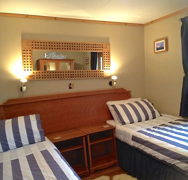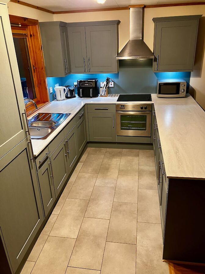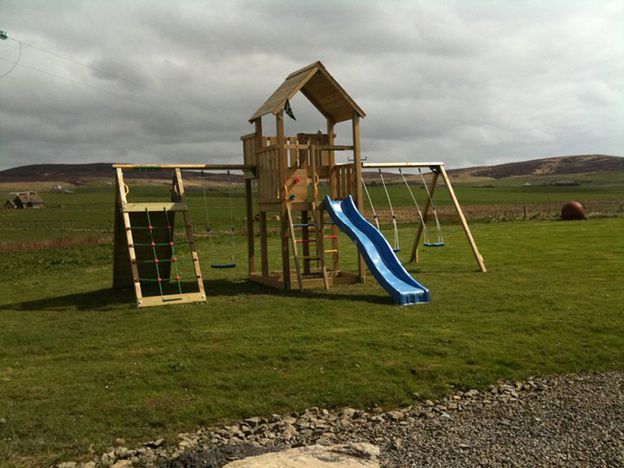 Open all year round, the chalets have been assessed by VisitScotland as prestigious four star standard, and offer accommodation for four people in each unit. Each unit is single storey and includes ample parking, entrance porch, living area with spectacular views to Scapa Flow, well equipped kitchen open to dining area, 2 bedrooms (zip and link beds offer an option of double or twin bedding) and bathroom with shower over bath. There is a double bed settee in the lounge and cots and additional beds can be set up. A colour television with Freeview channels, DVDplayer, radio and CD player, refrigerator/freezer, microwave, Ninja airfryer, dishwasher and washer/dryer come as standard. Ramps, wide doors and lowered light switches make these units accessible for those with disabilities.