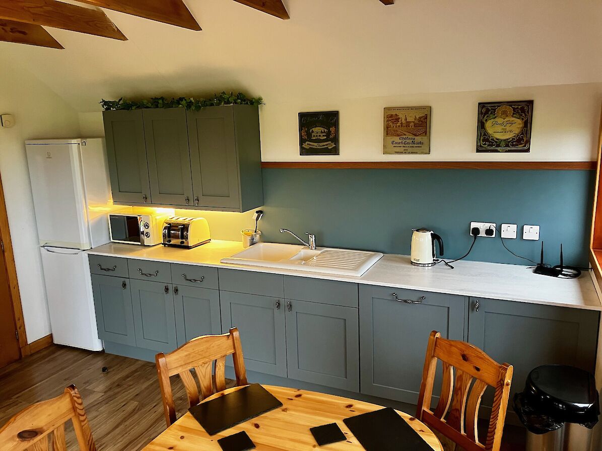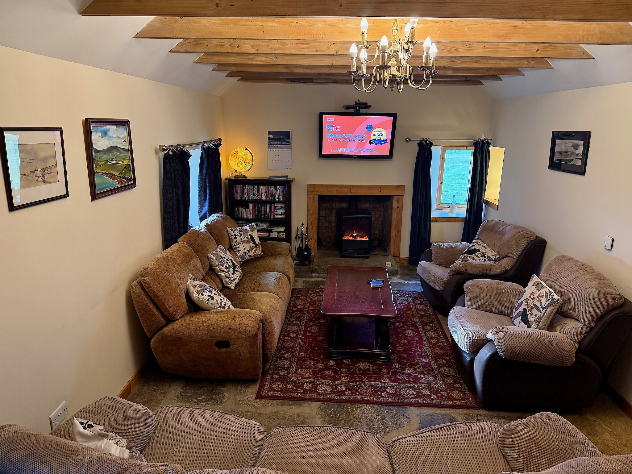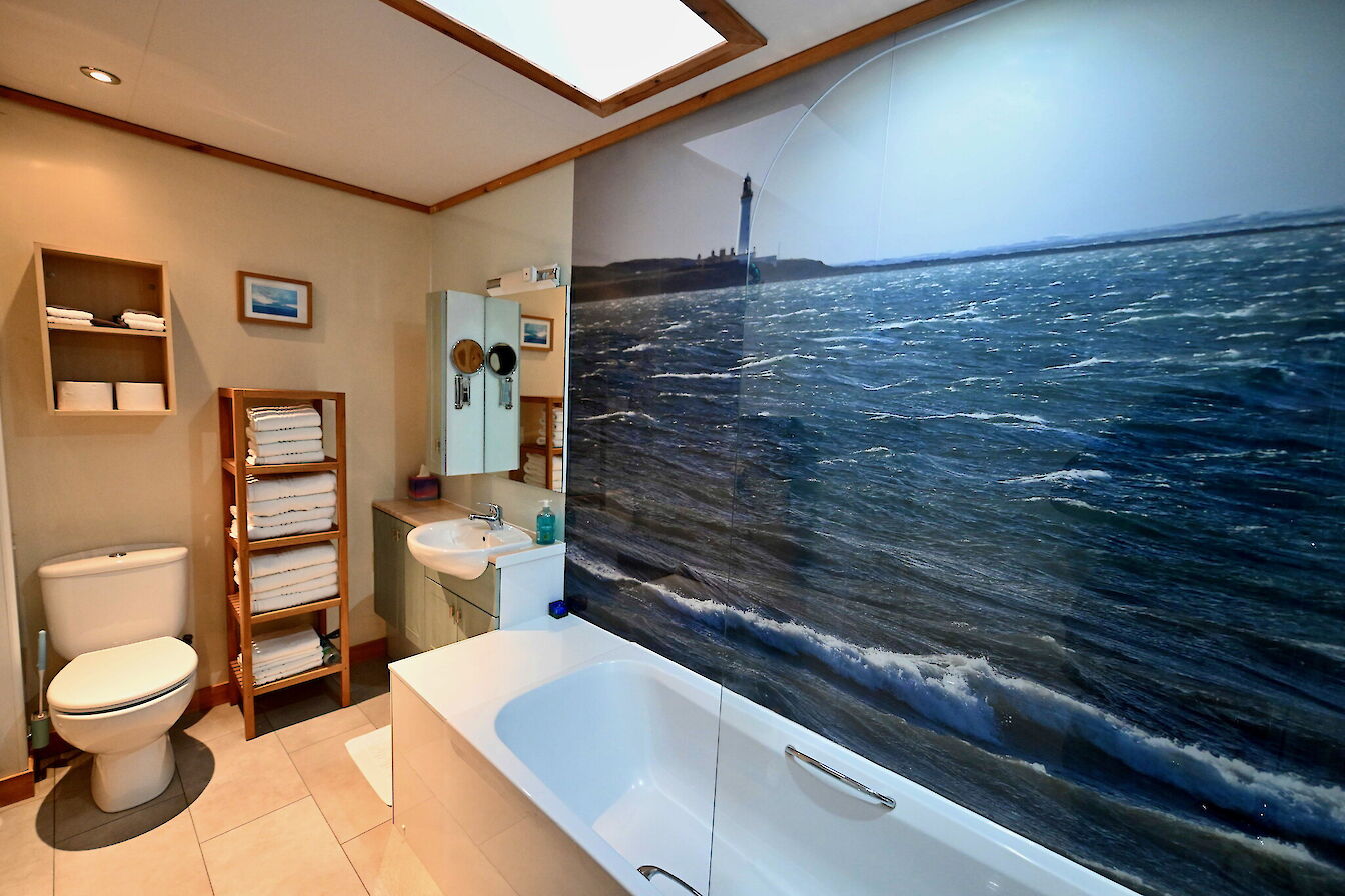 Buxa Croft House is a sympathetically renovated derelict house with natural wood extension. Underfloor heating beneath original slate floors ensures that the house is always cosy. Energy efficient solar panel guarantees hot water on demand. Accommodation spread over one floor includes an entrance vestibule with built in seated bench and ample coat hooks for outdoor gear. A stunning lounge and dining room with multi-fuel stove and large screen television with Freeview and Blu-ray player. There is an adjoining double bedroom with multi-fuel stove and ensuite shower room. The spacious eat-in kitchen has built in window seats to enjoy the glorious view of the sea and hills of the neighboring island of Hoy. The kitchen incorporates a variety of quality integrated appliances including a Ninja airfryer and an additional television with built in DVD player. Large patio doors from the kitchen lead out to a paved patio area with large picnic table for “al fresco dining” while enjoying the glorious sunsets over Scapa Flow and Stromness. There are two more bedrooms both benefiting from built-in wardrobes. The “kids” room has two bunk beds sleeping four with an additional cot available. The master has a double bed that looks out to Scapa Flow through large patio doors leading to the paved patio. The modern family bath is fully fitted including shower over bath. Sleeps 2-8 people comfortably. Linens and towels included.
