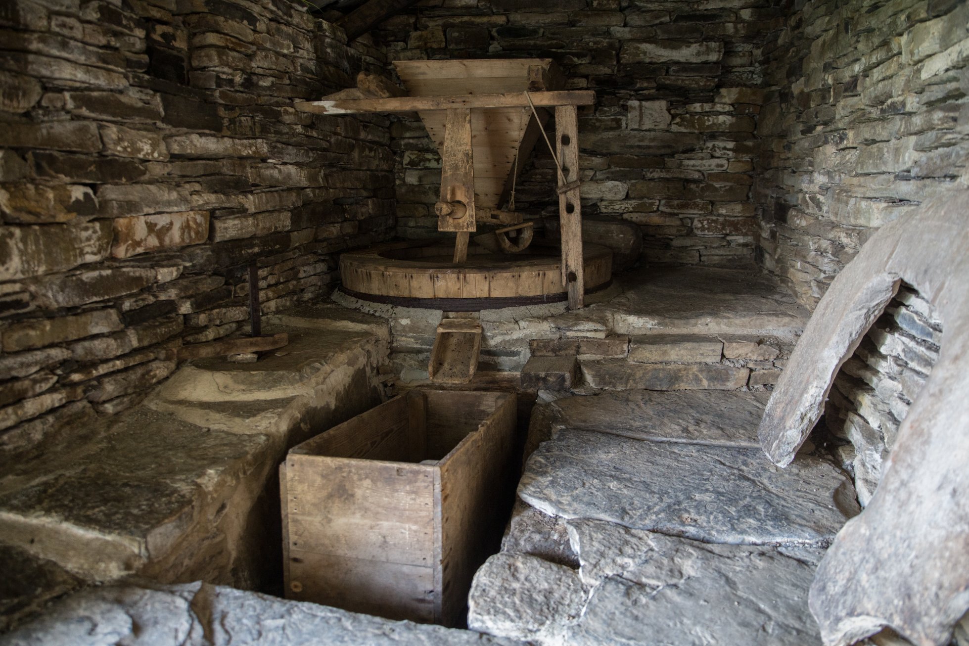 The building has been fully restored and, after admiring the setting, the stunning stonework and the traditional turf roof, make sure you open the old wooden door and stoop down to step inside. You'll see all the original equipment, including the paddle wheel, grind stones, the cowling, hopper and meal bin. It's a real snapshot of times gone by in Orkney, and provides a glimpse into the life of Orcadian farmers from yesteryear.