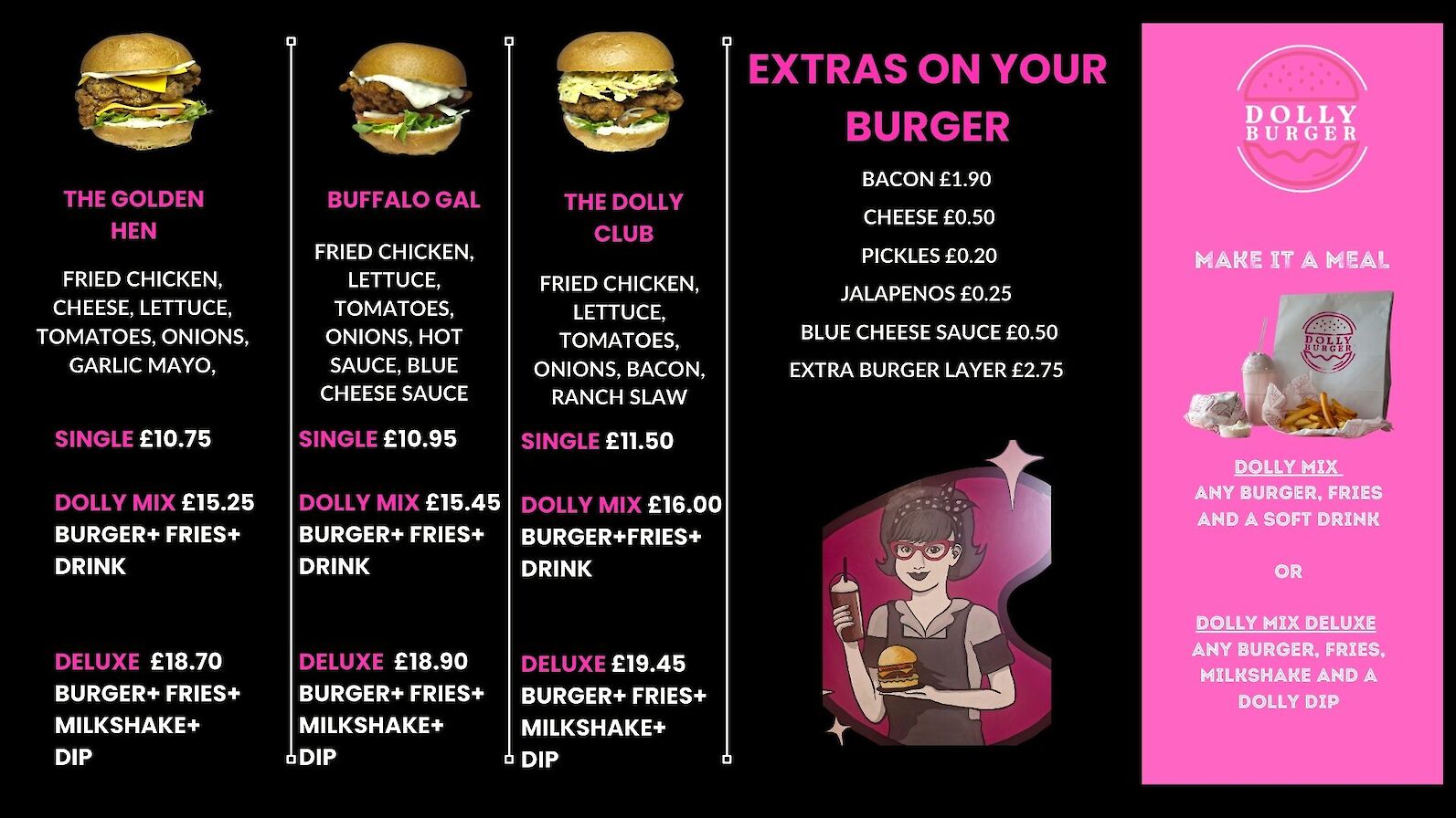 Welcome to Dolly Burger. A place where taste meets tradition, freshness meets flavour, and every burger is lovingly made to order.