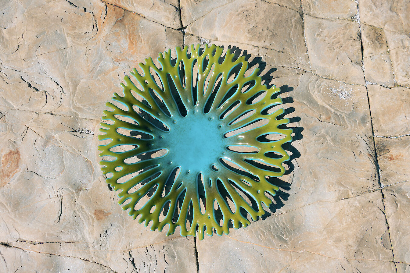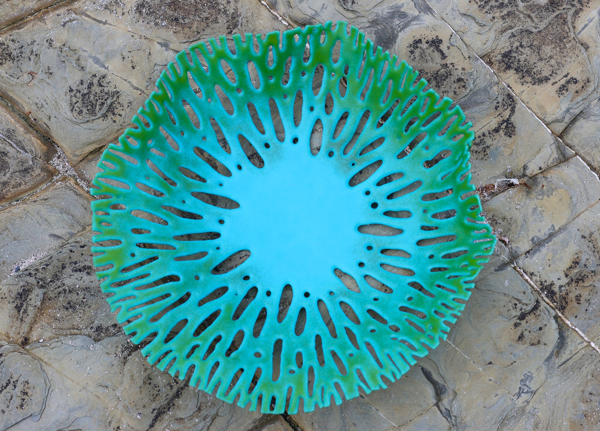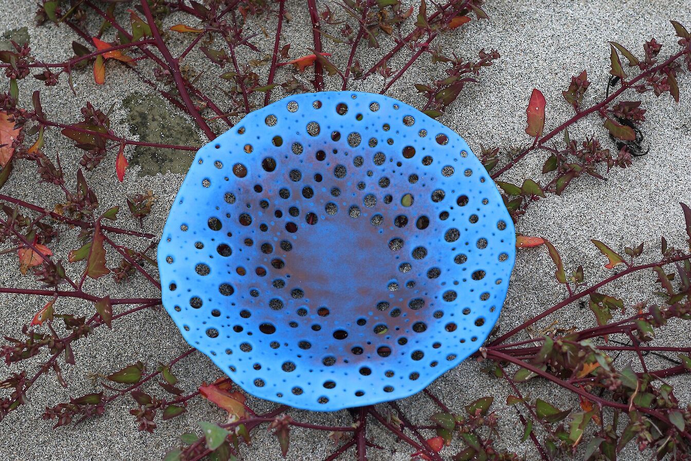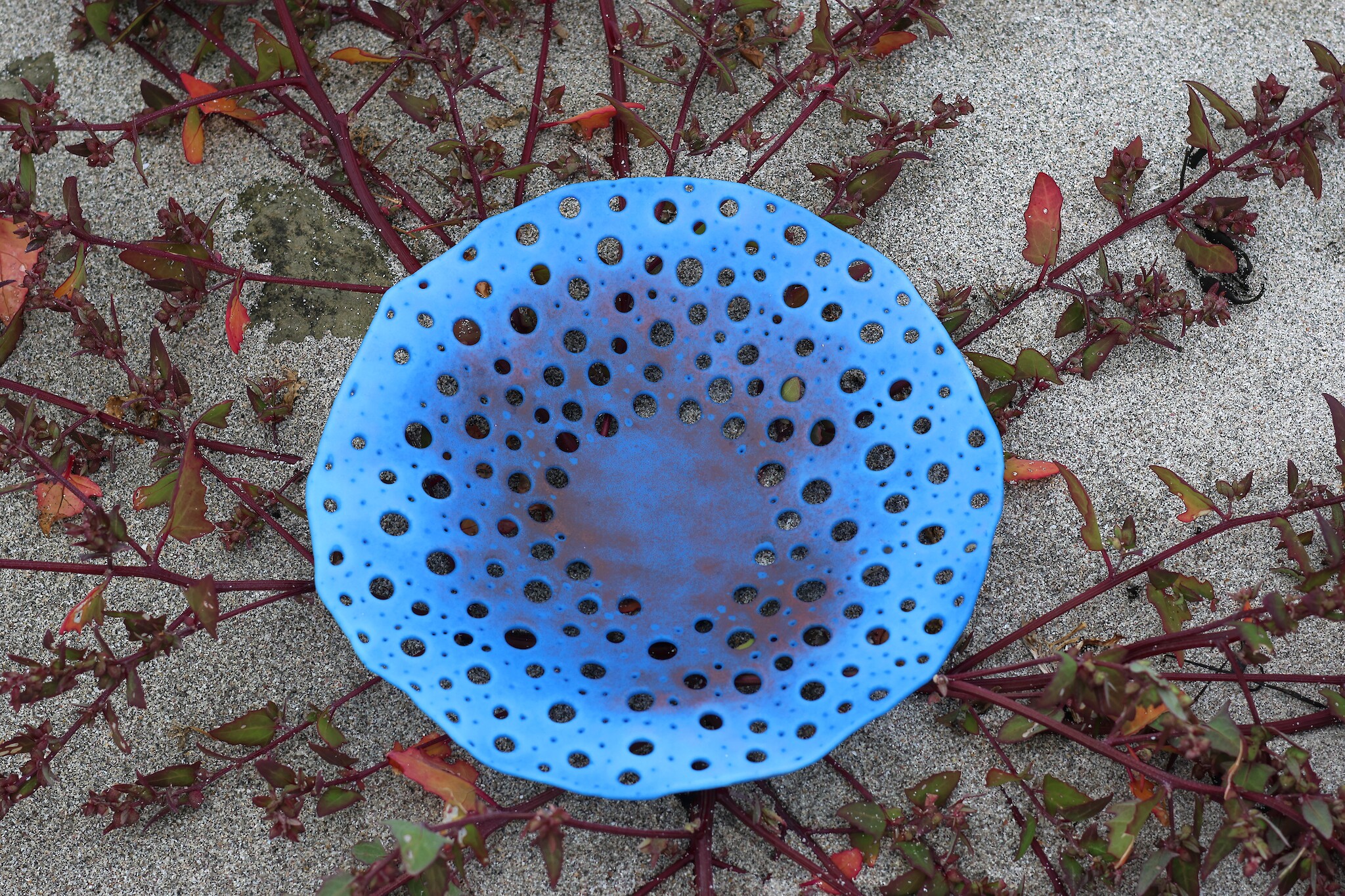 All my work is designed, assembled, and fired in my kilns at my home studio in Deerness, Orkney. My glass art often involves multiple firings and a range of techniques and cold working, including developing my own drawings into screens to screen print in enamel between the layers of glass, painting with enamels and powders, building intricate freeform designs from glass powder, and kiln-formed gravity drop vessels and jewellery.