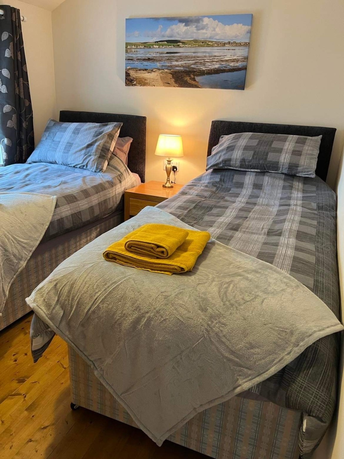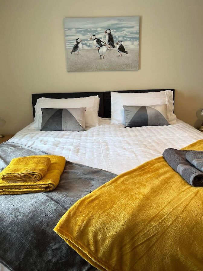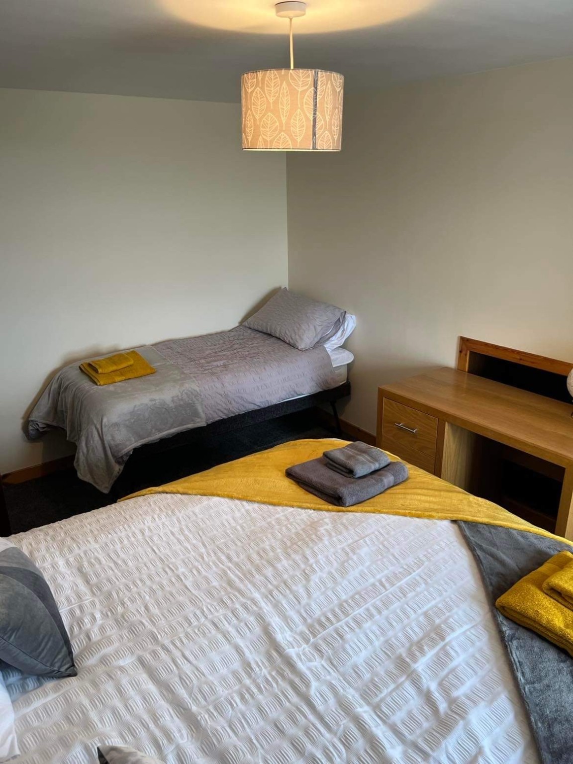 Air source heating with electric fire in living room. Living room with dining area and separate kitchen. Main bedroom is set up with a zip & link superking bed & can be changed to single beds with an additional single bed if needed. Second bedroom is set up with 2 single zip & link beds and can be changed to a king size bed. Bed linen & towels provided free of charge. Welcome pack & continental breakfast provisions are included. Flexible check-in & check-out whenever possible. Newly open for bookings in May 2022.