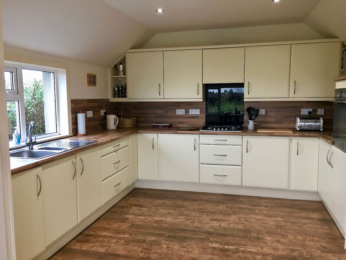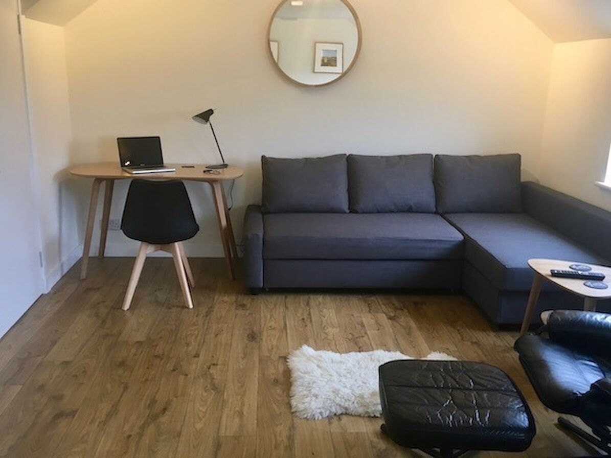 The accommodation comprises of a large well equipped open plan kitchen diner with a dining table comfortably seating 8 people. There is a master double bedroom with en suite bathroom boasting a bath and walk in shower. Bedroom two has bunk beds and is next door to a wet room. The large living room has two sofa beds, one of which is kingsize, and there is a further sofa, seating and a desk in this room.