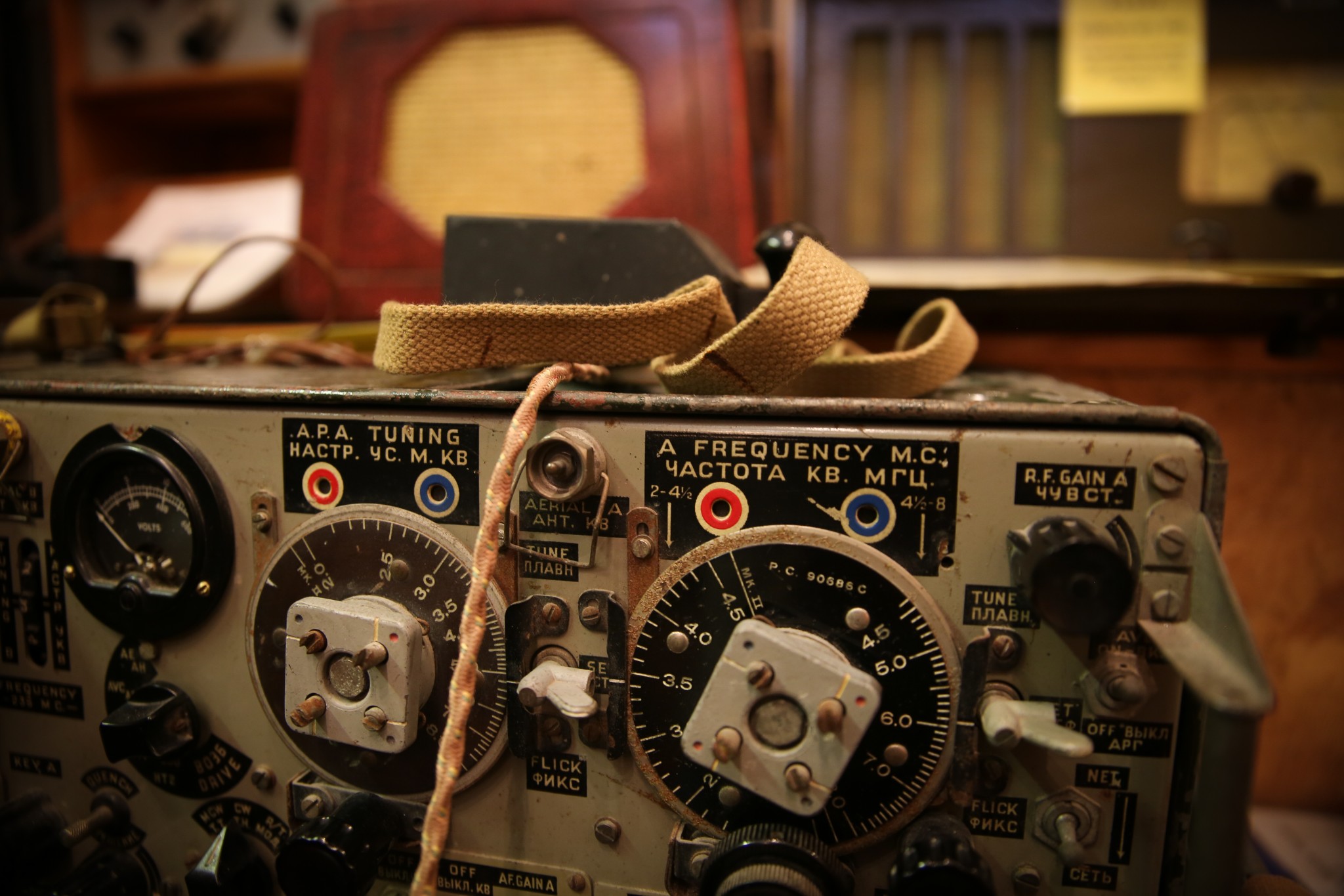 The wartime section has displays showing how Scapa Flow and the Home Fleet were protected during WW2. Artefacts include a replica radar station, bomber radio equipment, Spitfire radios, and actual 'spy suitcase' radios. There are also items on display taken from interned German ships, including a U-boat radio.