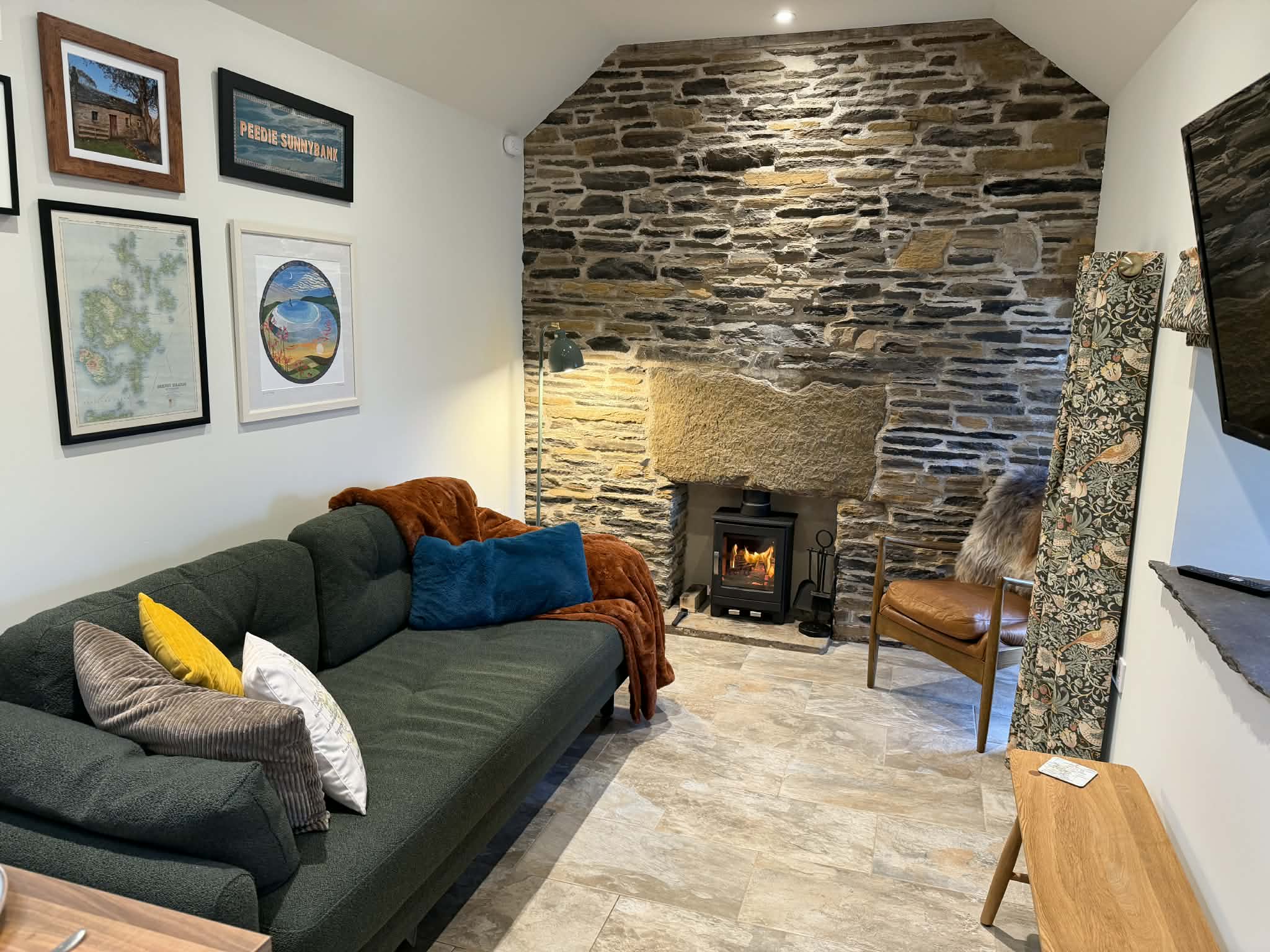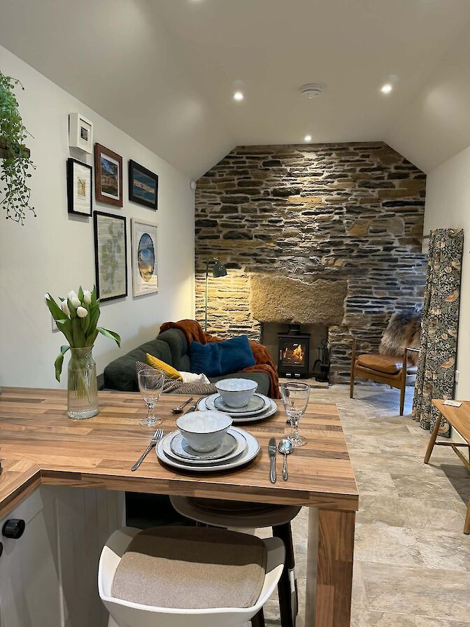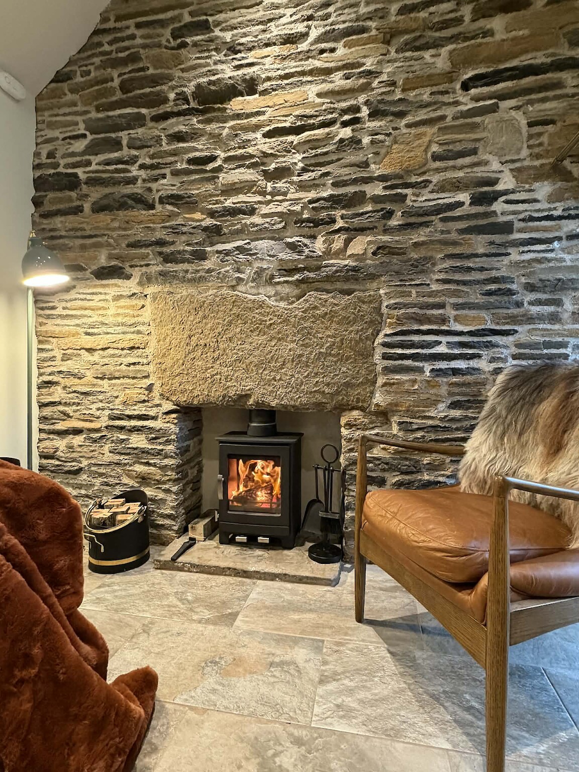 We have kept and restored the exposed stone wall. We have installed a new multi-fuel stove, making for cosy nights around the fire. We will provide kindling, fire lighters and enough fuel to make two fires. Further fuel can be provided if requested, for an additional cost, or guests can buy this themselves locally.
