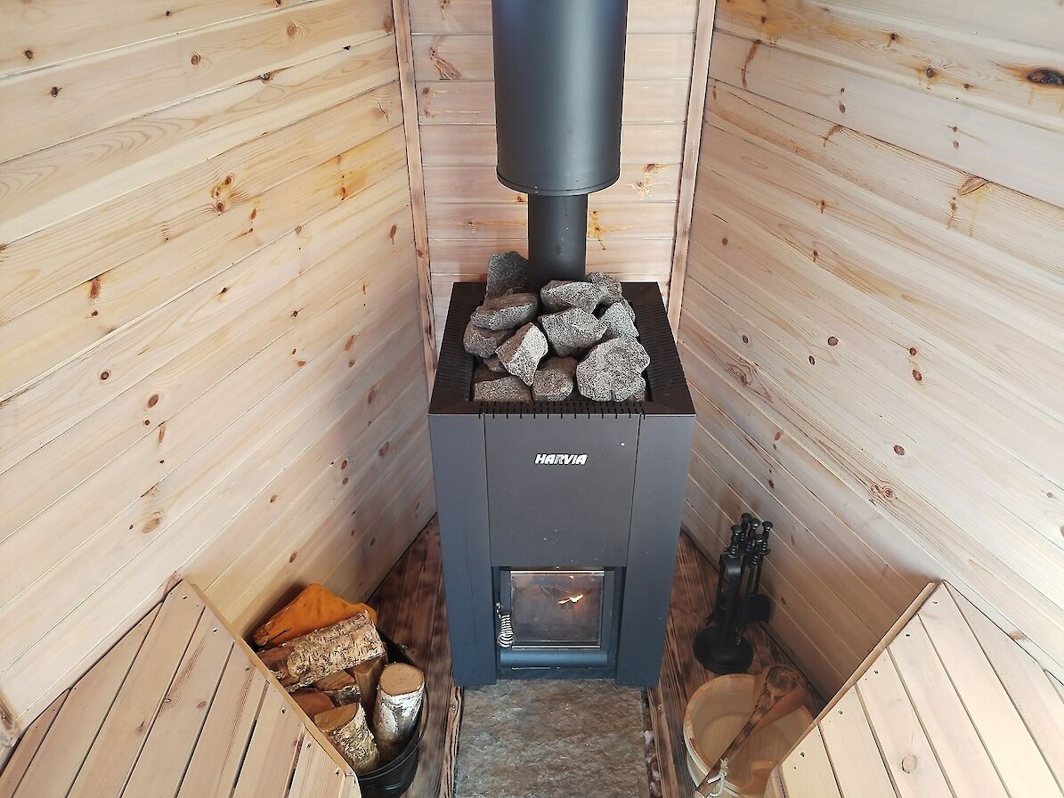 Step inside and you'll be enveloped by the rich warmth of Redwood, crafted to achieve optimal air circulation which is key to achieving löyly. This Finnish term means the “Spirit of Life” which is best described as the invigorating steam that rises when water meets the heated stones on our authentic Harvia wood-burning sauna stove, which itself rests upon a genuine Orkney beach stone.
