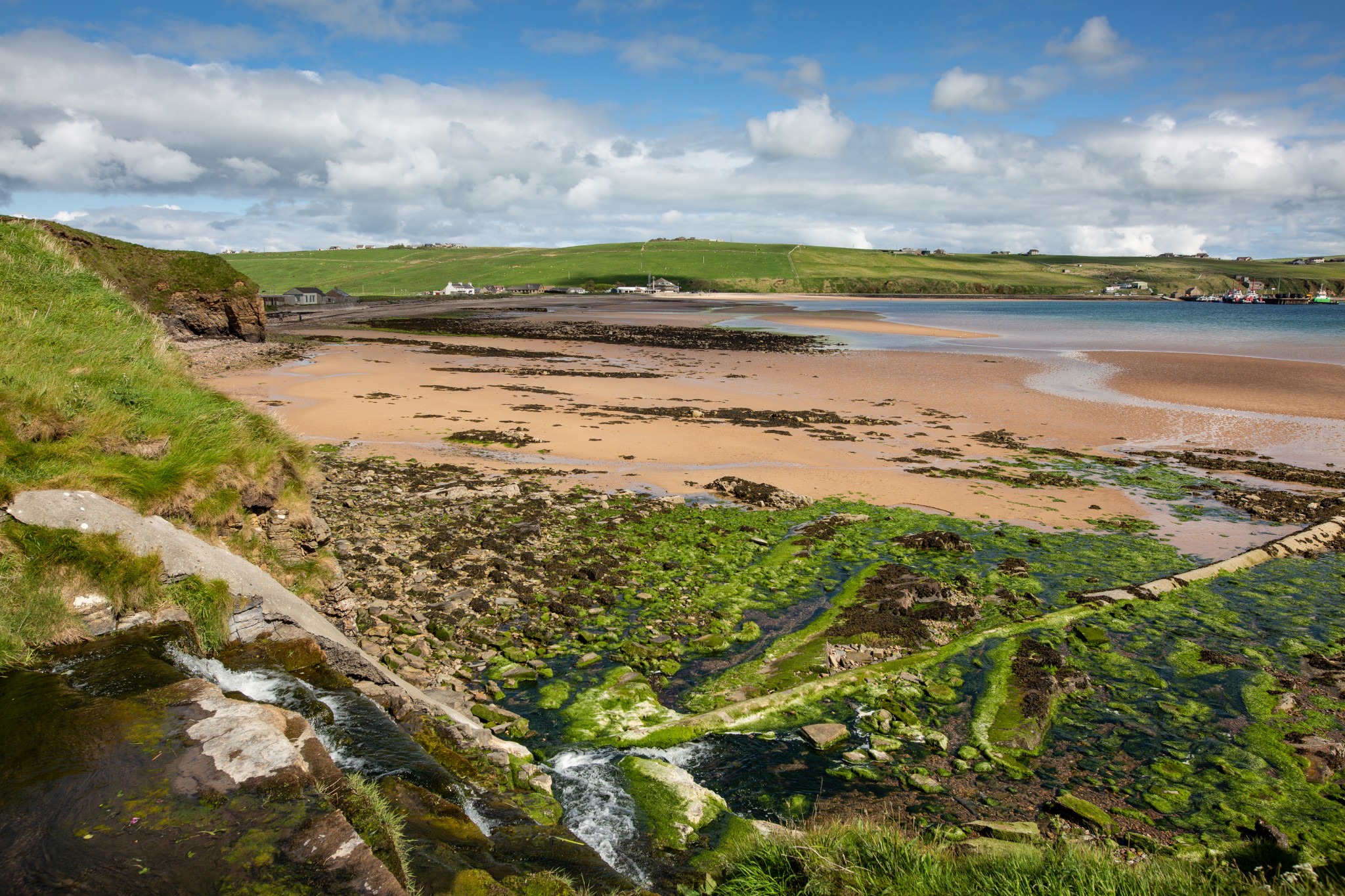 Scapa can be a real hive of activity, with vessels berthing at the nearby pier, oil tankers out in the Flow carrying out ship-to-ship transfers, and windsurfers, kitesurfers, kayakers, and swimmers all taking to the sheltered waters. Onshore expect to meet plenty of friendly dogs having fun on the sand, and horses galloping through the surf.