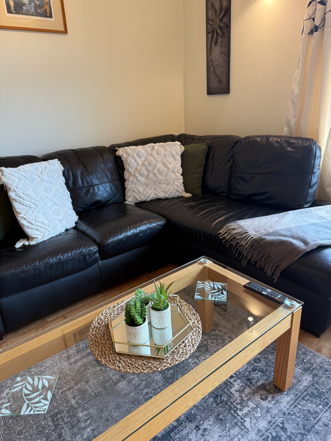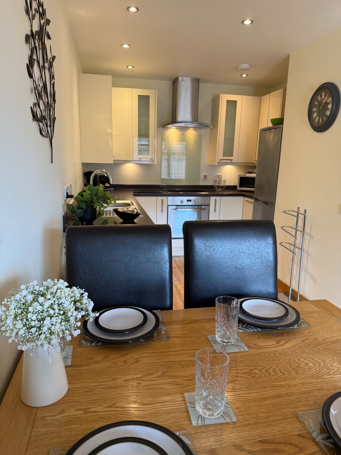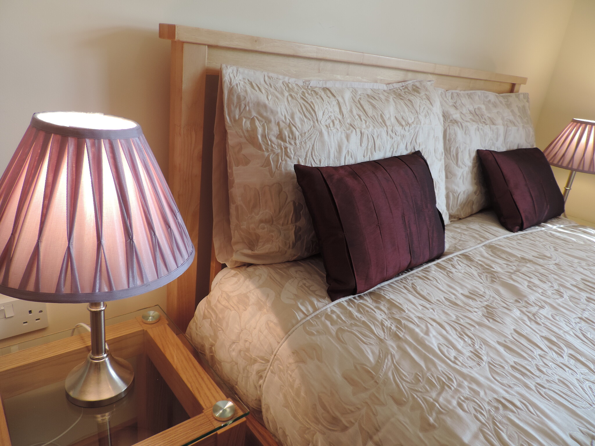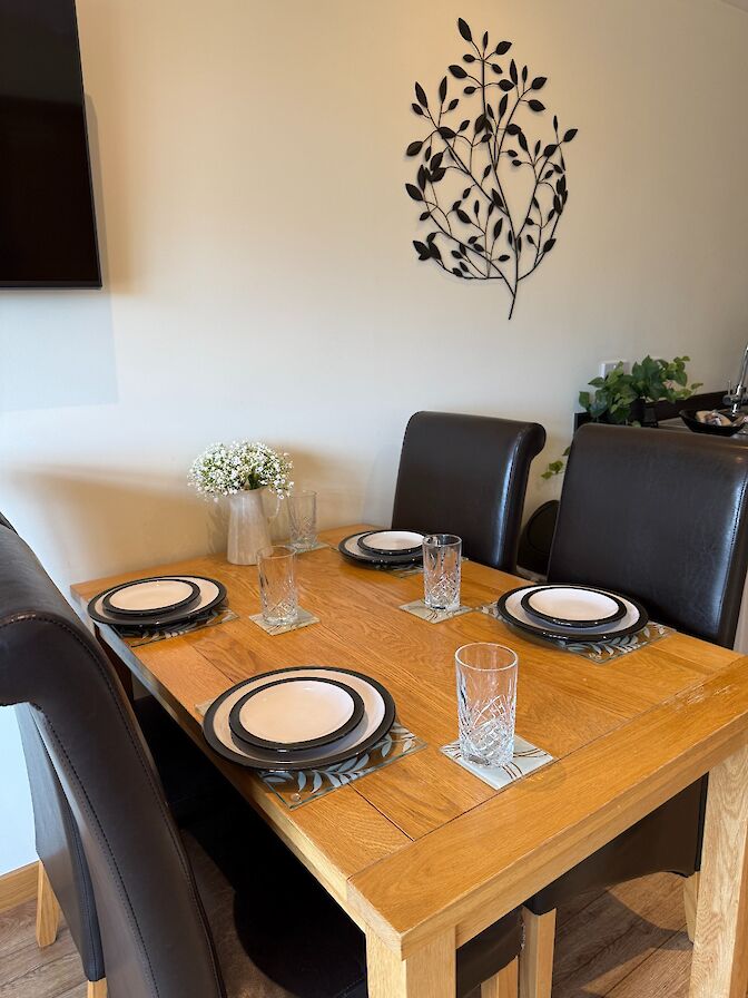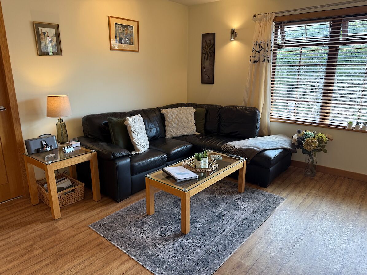 Double bedroom and a twin bedroom, shower room, open plan kitchen/living room, fully equipped kitchen, dining table and chairs for 4, leather corner sofa.