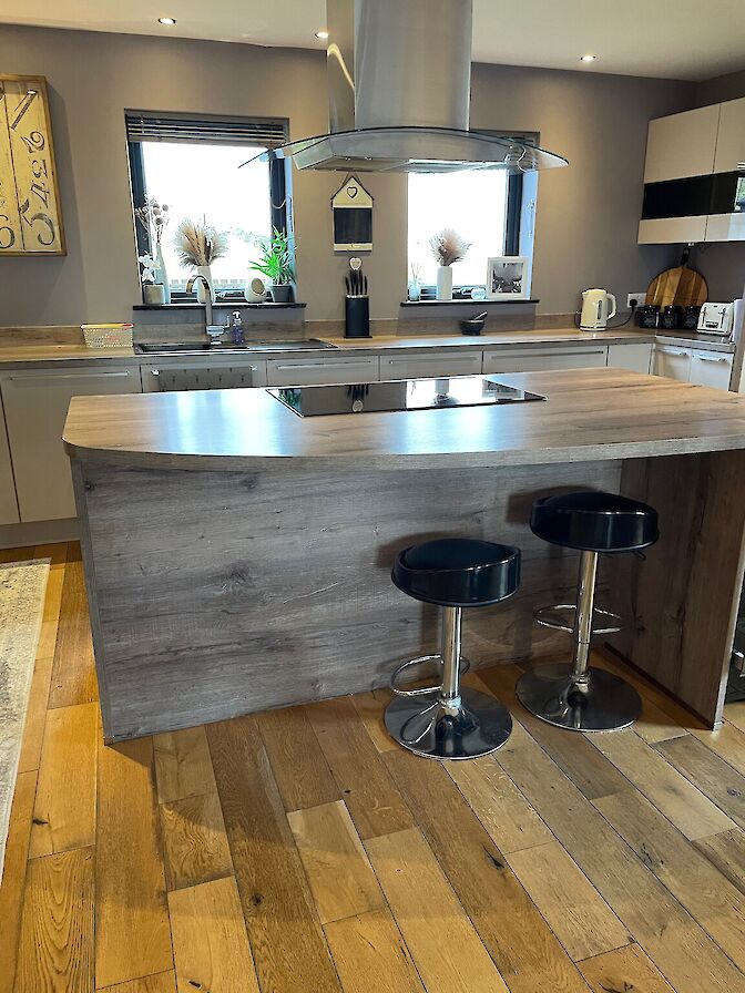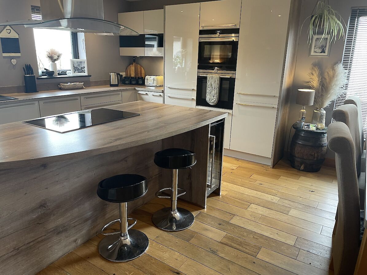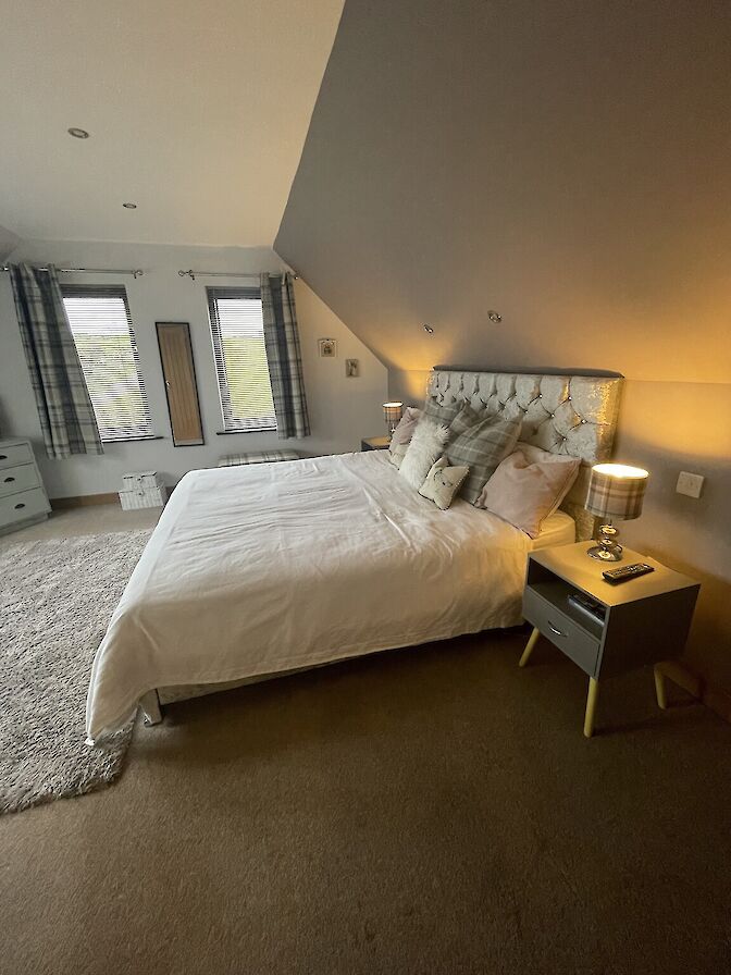 South facing 3 bedroom detached house built in 2015 to an incredibly high standard. Bedroom1: 1 x Super King Bed. Bedroom 2: 1 x King Size bed. Bedroom 3: 1 x King size/1 x Twin bed (room will be set up as king size bed. Please specify if you require twin bed on booking) Comprising an open plan modern kitchen/living room, separate living room on the upper level with a multi fuel stove and outstanding views, Oak finishings throughout, enclosed garden, BBQ area, & patio area With hot tub