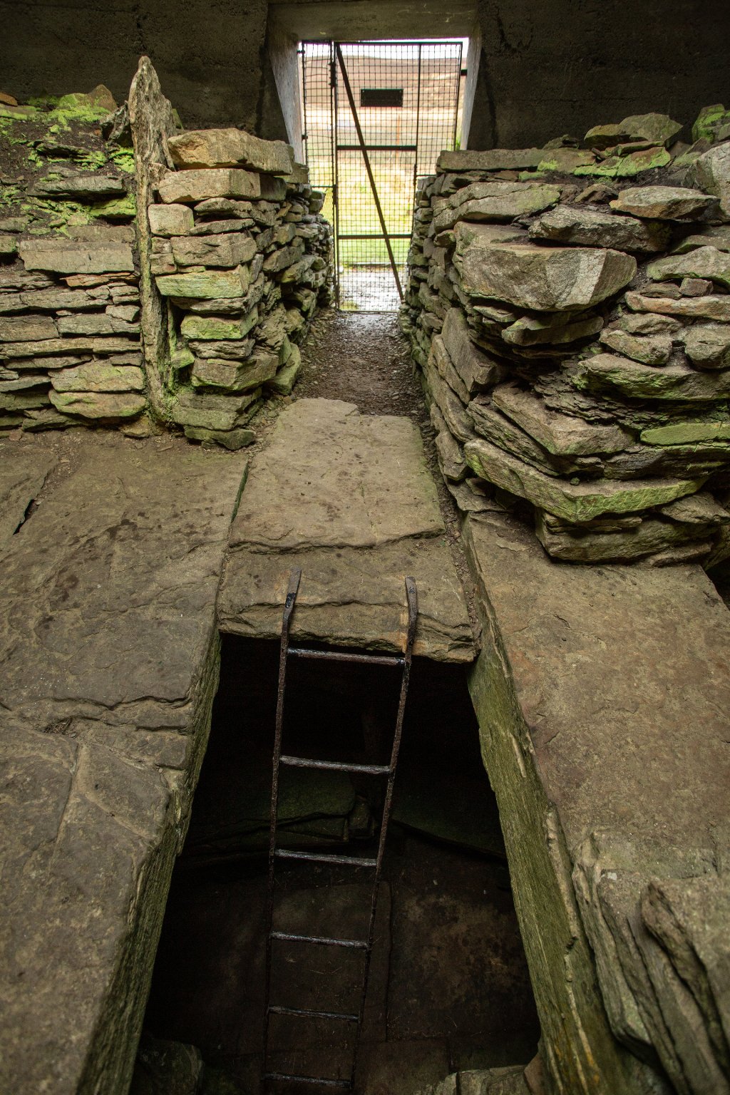 The cairn originally had two entrances, one each for the top and bottom chambers, but now an entrance hatch in the upper level provides access below. It's a very special site to visit and provides a perfect glimpse into the lives, and deaths, of Orkney's Neolithic people.