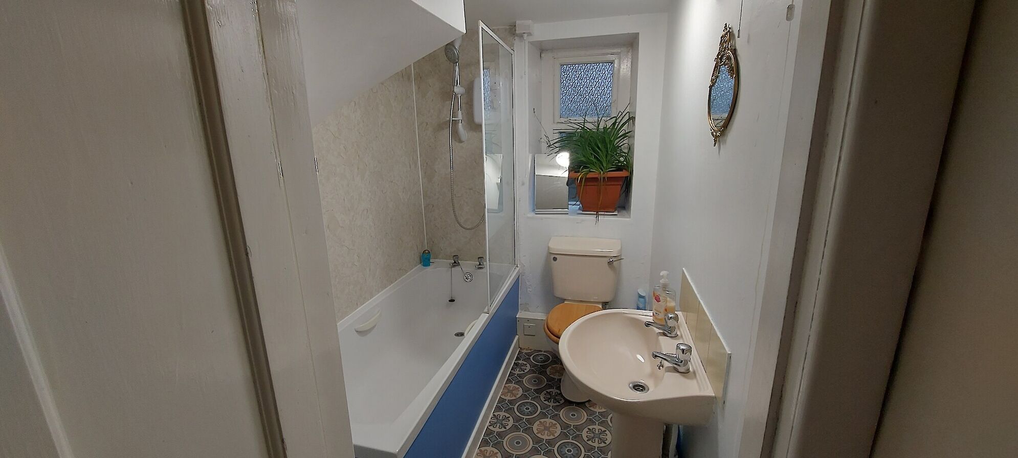 - bathroom with bath and electric shower on ground floor