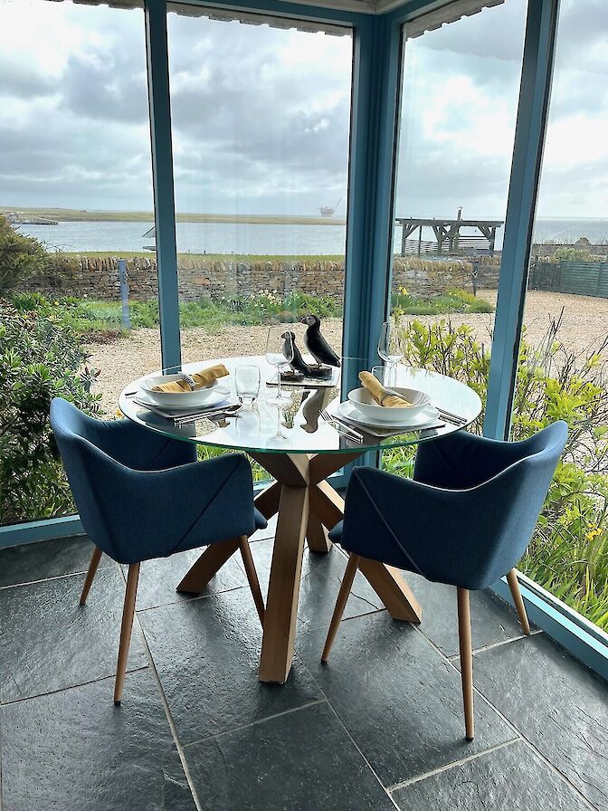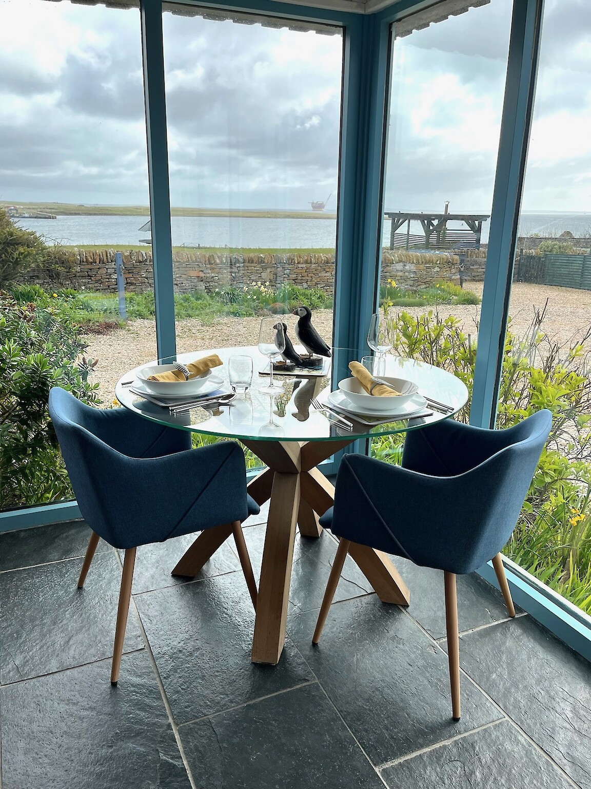 Puffin Quoy offers you the perfect holiday retreat in Orkney. Unwind, reconnect, and soak in the ever-changing seascape overlooking the Bay of Houton from the beautiful gardens, the shelter of the sitooterie or the panoramic living room.