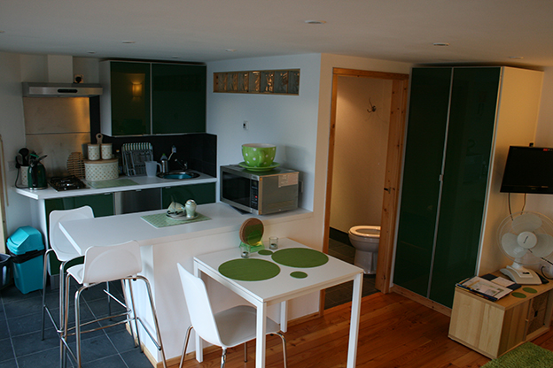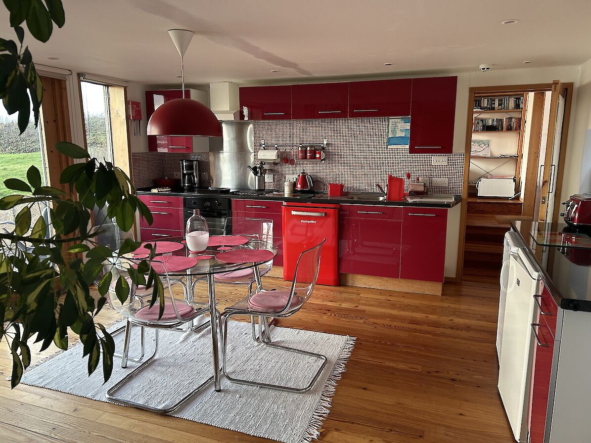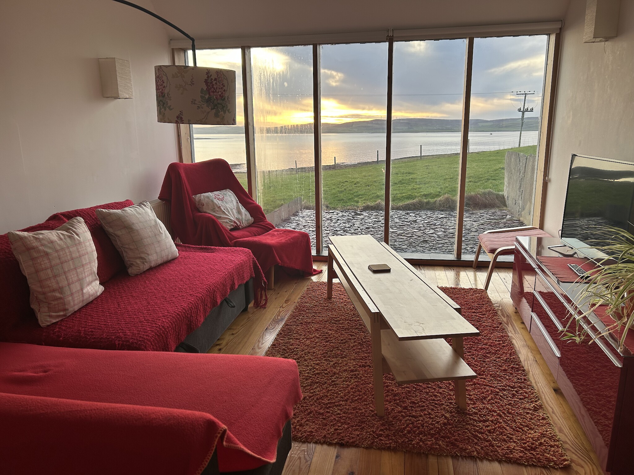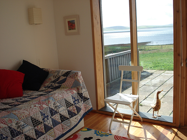 The Egilsay (aka green unit) is a cosy studio bedsit with a sofa bed suitable for a single person or couple. It has a shower wet room. There is no sea view from this unit. A high chair, travel cot or wooden cot can be made available on request. Dogs can be accommodated by arrangement. Short or longer lets are available on a daily rate. Seasonal organic farm produce may be available. Bikes are available to hire. Courtesy transport to and from the pier by arrangement for guests.