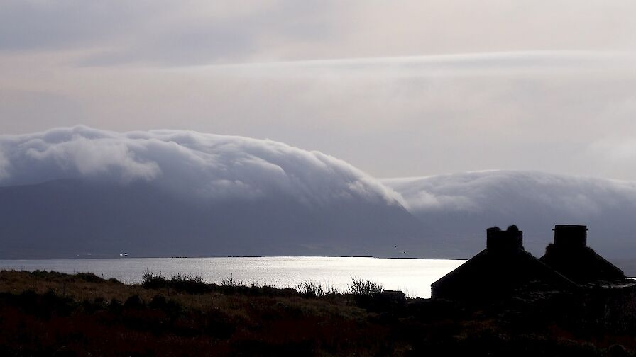 Orphir is also blessed with spectacular views across to Hoy, especially from the Scorradale Road. During the winter months you can see spectacular scenes as the sun fades away behind the famous Hoy Hills, as squalls of rain and dark clouds blow in through Hoy Sound.