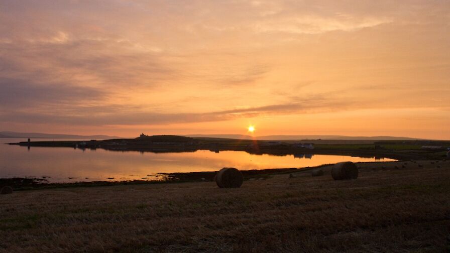 The ferry journey from Kirkwall takes just twenty five minutes and leads you to a beautiful village and a green island full of rich farmland beyond.