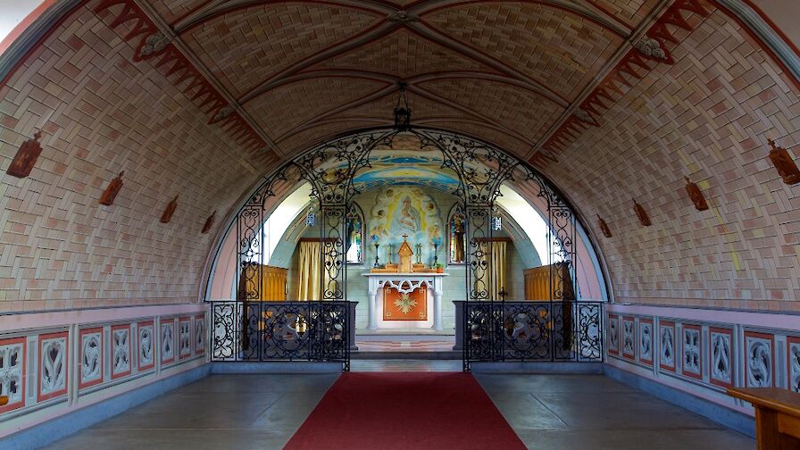 One of Orkney's most popular tourist attractions sits on Lamb Holm. The unique Italian Chapel was constructed by Italian prisoners of war during WWII. They built the Chapel out of old Nissan Huts, using any materials they could get their hands on. Inside you'll find beautiful artistry, hand-painted by one of the POWs, Domenico Chiocchetti, more than seventy years ago. If you are in Holm, make the short trip across the Churchill Barriers and see this amazing site for yourself.