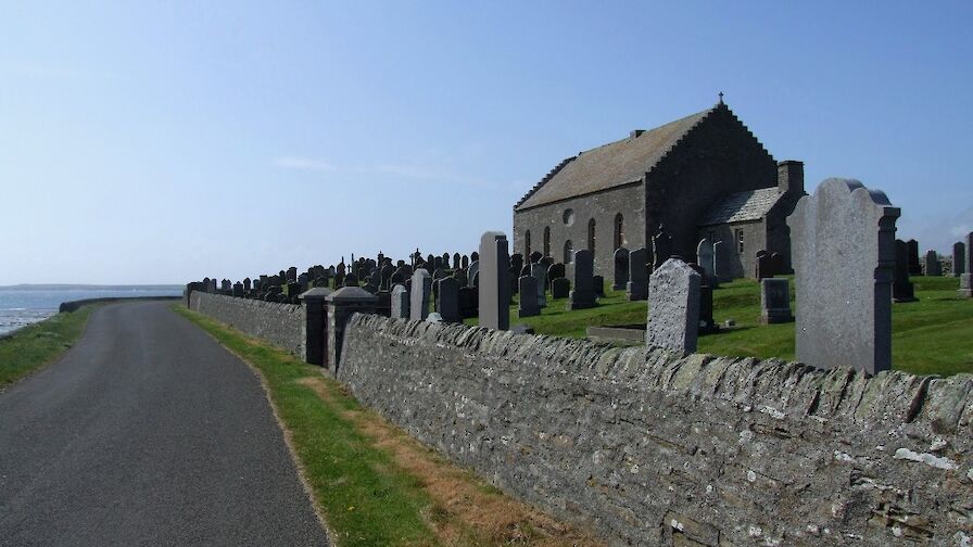 The east end of Holm takes you on a trip to a quiet, scenic part of the parish. The St Nicholas Kirk sits on the shore at Greenwall and is a great spot to stop during the summer, with wild flowers lining the verge. The Friends of St Nicholas group has been looking after the Kirk in recent years with the aim of preserving it for future use. The Vestry has also been restored and is full of facts, figures and photos about the Kirk and the parish of Holm's past.