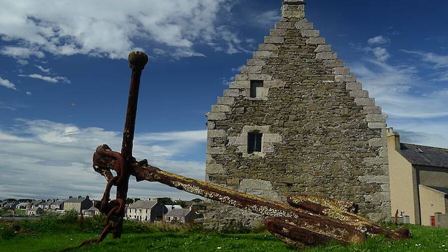 In the heart of the village is the old storehouse, built hundreds of years ago and used to store grain for the Laird at Graemeshall. It was raided by French privateers in the late 1600s and today remains empty, although plans to restore it and bring it back into use have been discussed in recent years.