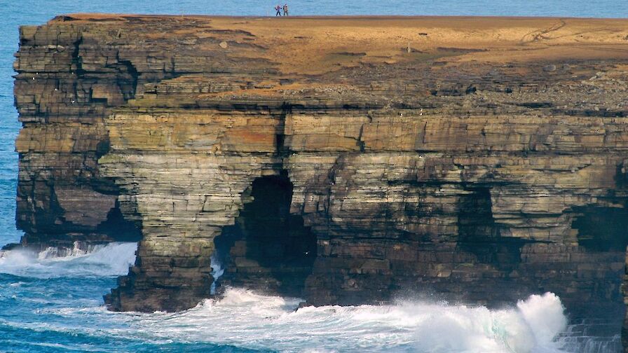 The walk includes Midhowe Cairn, built around 3,500BC and housed in an imposing building featuring a suspended walkway offering a fantastic view of the structure.