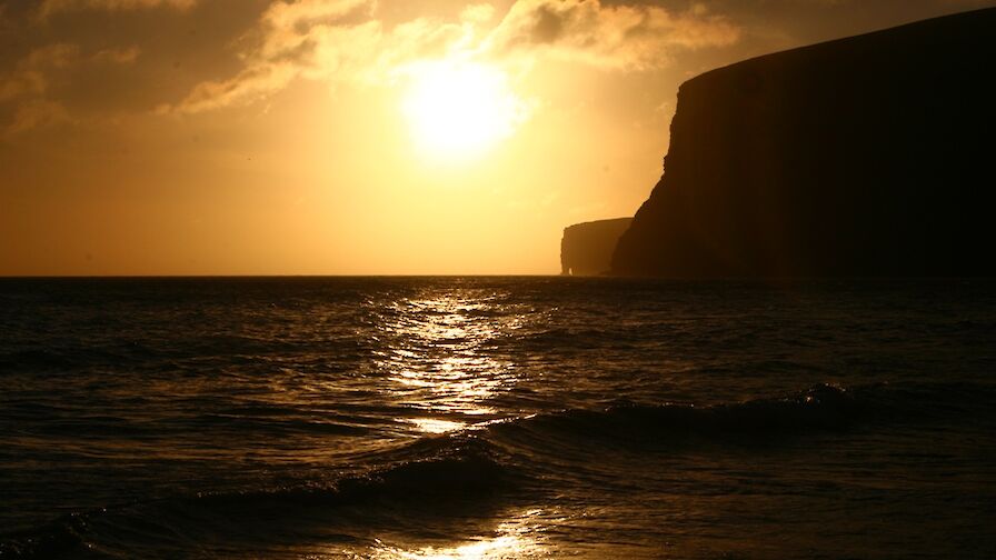 All round the county, fulmars cackle at each other, as the pairs renew their bond and find their favoured nest site for the year. On still days the guillemots can throng the cliffs at places like Marwick Head in West Mainland and Noup Cliffs on Westray. However, it will be weeks before eggs are laid, so the next day cliffs can be completely empty.