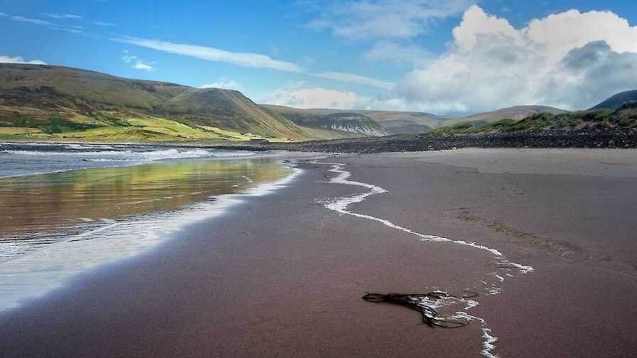 If you’re walking or driving, you’ll eventually come to the remote and wonderful Rackwick bay. With its boulder strewn beach of golden sand and crashing waves, surrounded by sheer cliffs, it is a place like no other in Orkney. There is a car park and public toilets and a small bothy and campsite too.