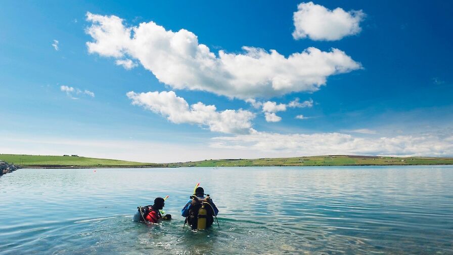 Burray boasts some of the best beaches and views of Scapa Flow anywhere in Orkney. A special lay-by has been built into the verge just after you cross the third barrier, offering a stunning panoramic scene over the Flow for sunsets and stormy weather. But when the weather is calmer, Burray offers the perfect chance to experience life beneath the waves.Scapa Scuba runs its Try a Dive course from the shallow shore on the west side of the third barrier. It's a fully instructor led dive around wartime blockships, which lie on the seabed in-between Burray and Glimps Holm. It's an incredible experience for anyone without diving qualifications keen to experience Orkney's unrivalled wreck diving. On the other side of the road is the beautiful beach at Weddell Sound. Although strictly still on the uninhabited Glimps Holm, at low tide the gently sloping sandy beach stretches along the coast between the second and third barrier, with lovely views across to Burray and the remains of the blockship Reginald. It's a perfect spot to stop and take a wander - and the kids will love it.
