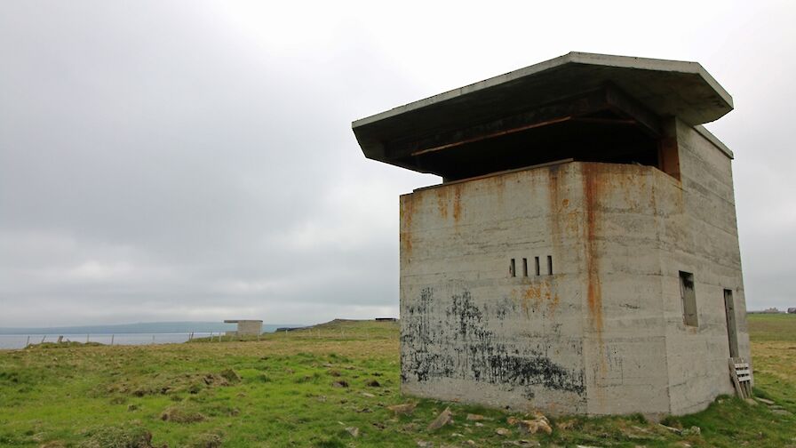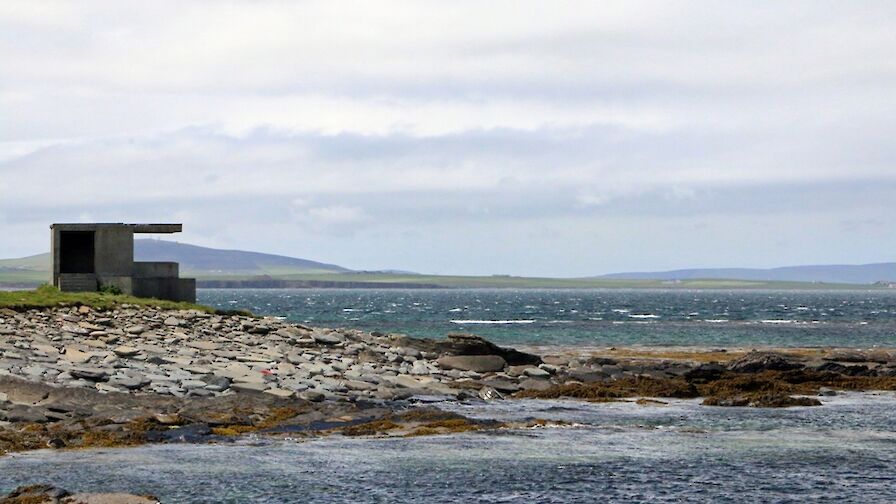 I had decided to drive to Rerwick Head, east of the Airport, expecting the pod to continue along the coastline of Orkney's mainland. I found a sheltered spot on the small cliffs with the looming remains of the WWII gun battery behind me, supremely confident I would get my own photos of the orcas as they swam past.