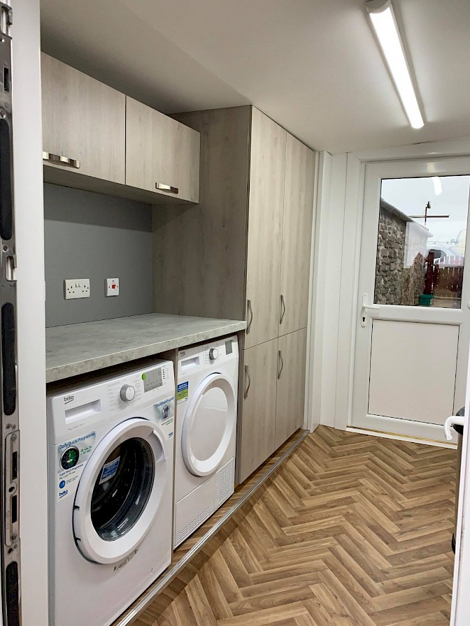 There is a very well equipped kitchen with cooker, fridge freeze, microwave and dishwasher. Smart TV’s are available in the living room and the two main bedrooms and with your own app subscription you can view e.g. Netflix and YouTube. There are three steps to the front door and one step into the living room and the two main bedrooms and two steps to the utility area. In the entrance hall there is the unique feature of a curved wall.