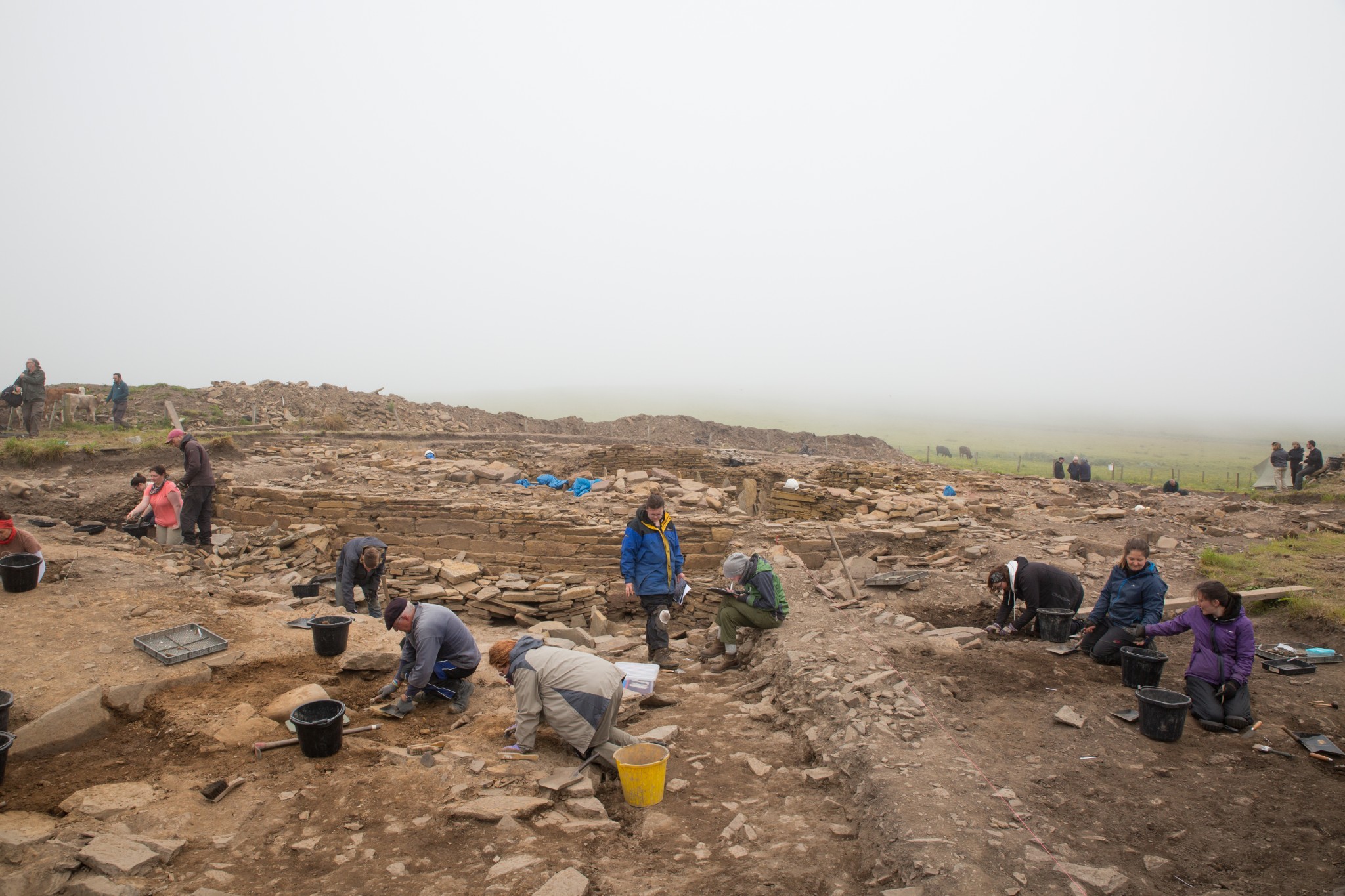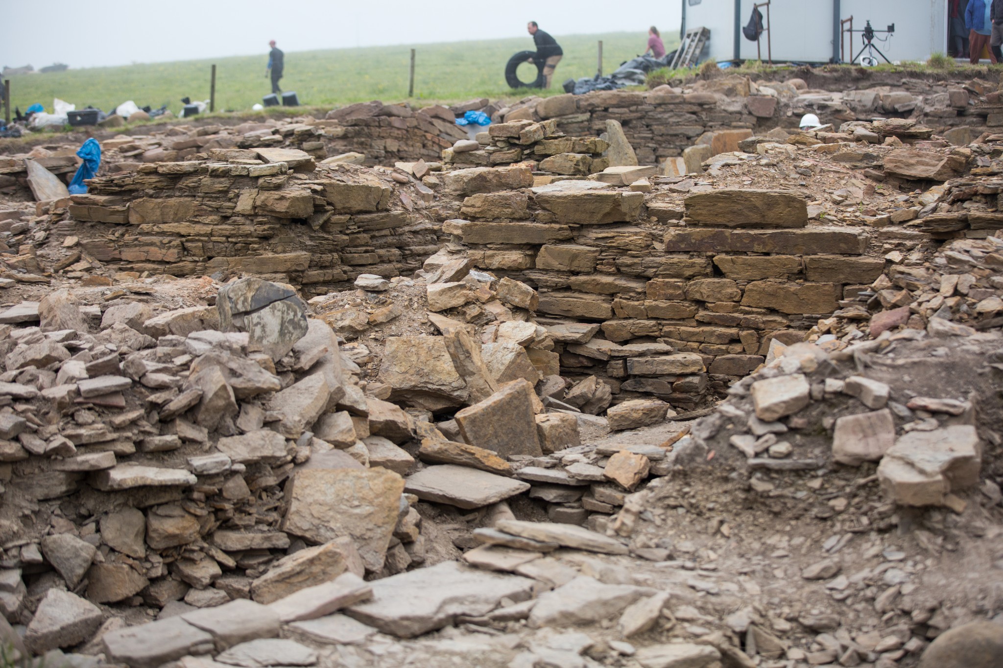 The dig focuses an Iron Age settlement centred on a large broch, around 22 metres in diameter, with evidence of later buildings in the area too. Finds at the site have included stone tools, pottery and a bronze pin, as well as a human jawbone.
