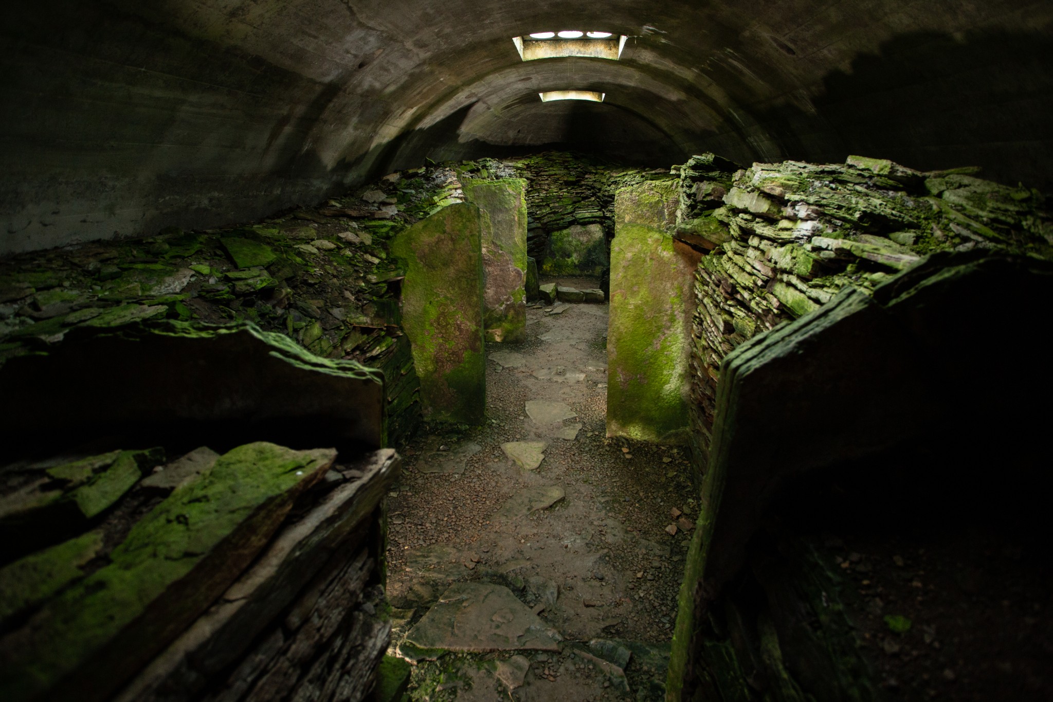 This 5000-year-old chambered cairn was excavated in the early 1930s with the remains of at least 29 people discovered inside. 17 skulls were lined up side by side, similar to other sites, including the nearby Midhowe. Archaeologists also found the bones of red deer, and flint and pottery, some of which suggests the cairn was in use until the late 2000s BC.